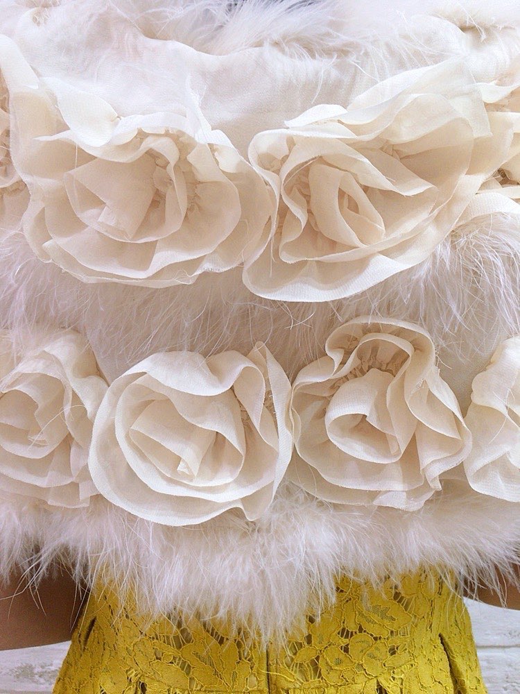 柔らかい生地に薔薇のモチーフと水鳥ファーがふんだんに付いてます