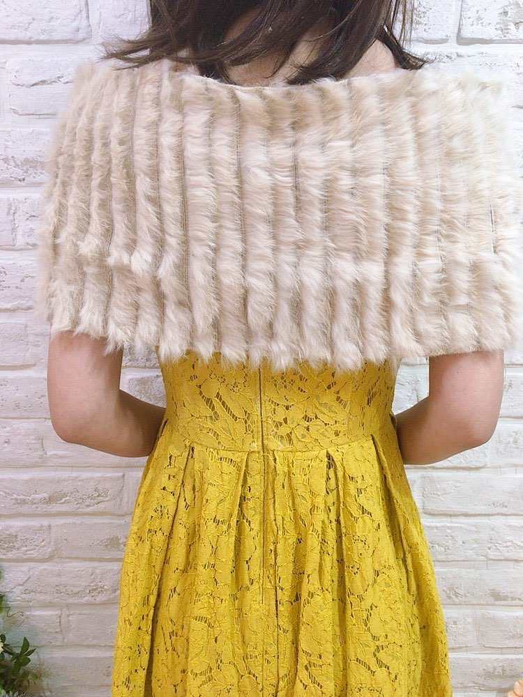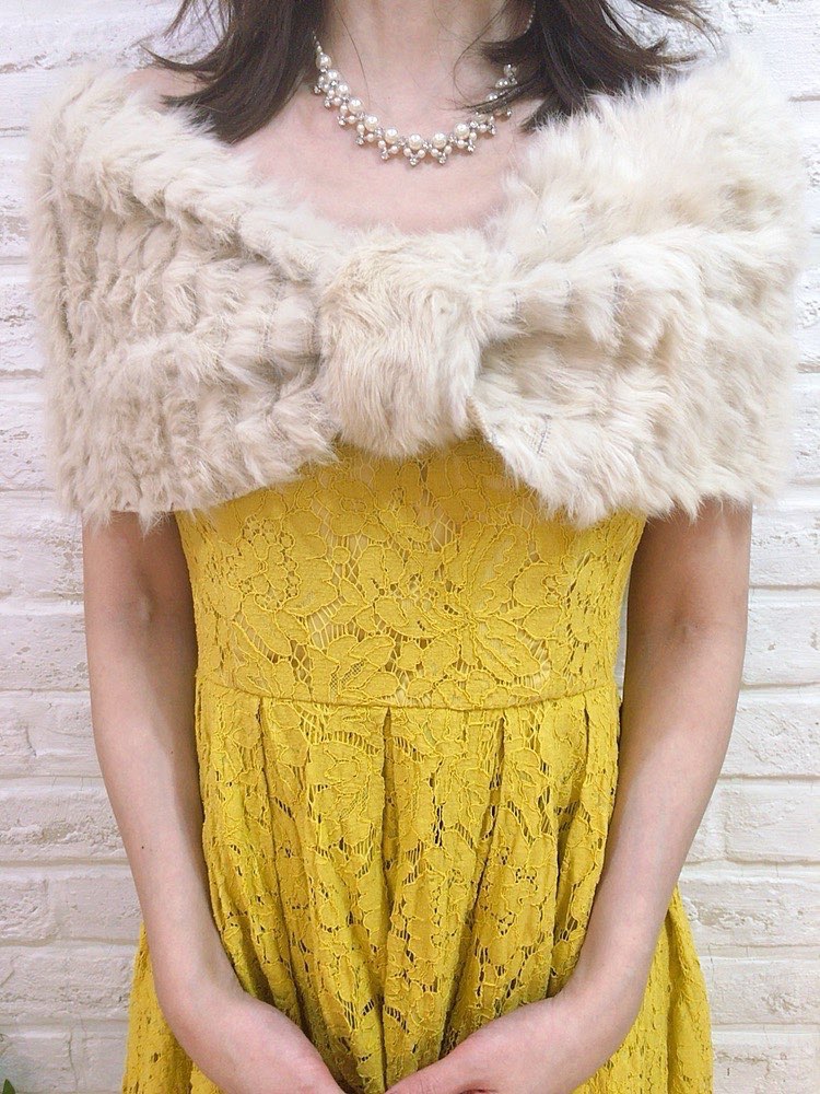 気品ある雰囲気にドレスアップを叶えるホワイトファーストール前部分がリボン型になっており、可愛らしい印象になります。