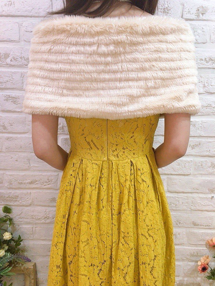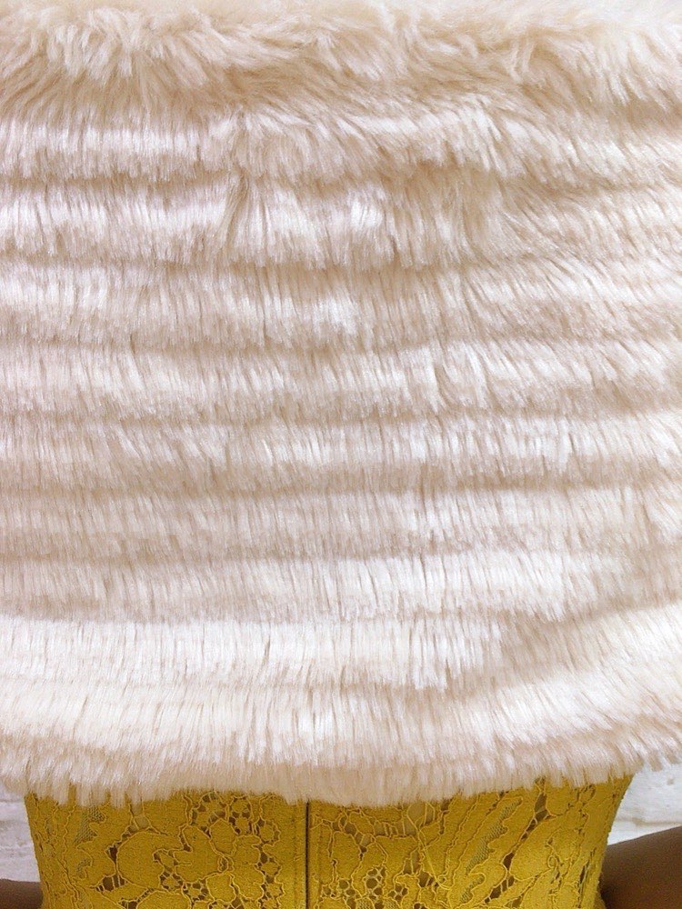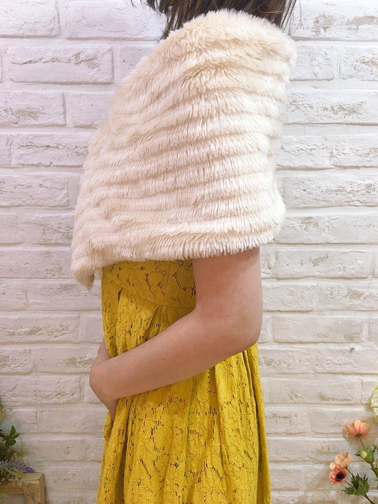 気品ある雰囲気にドレスアップを叶えるベージュのストール。たてしまラインが入ったファーなのでふんわりとした印象になり、 パーティや同窓会などにもおすすめです。