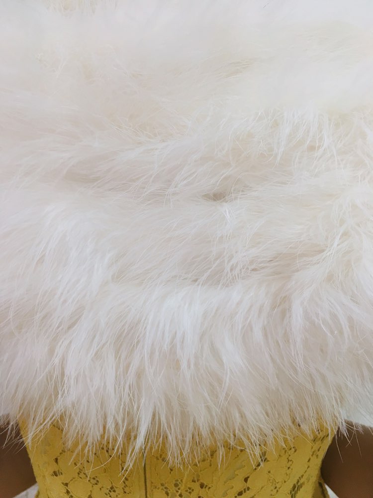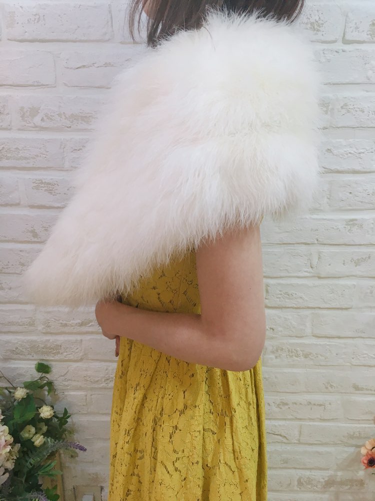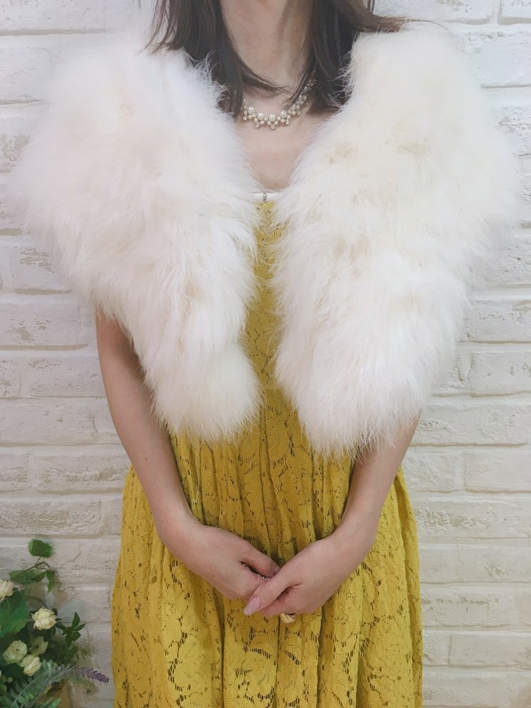 気品ある雰囲気にドレスアップを叶えるホワイトファーストール。毛長でボリュームがある大判ストールで華やかな印象になります。