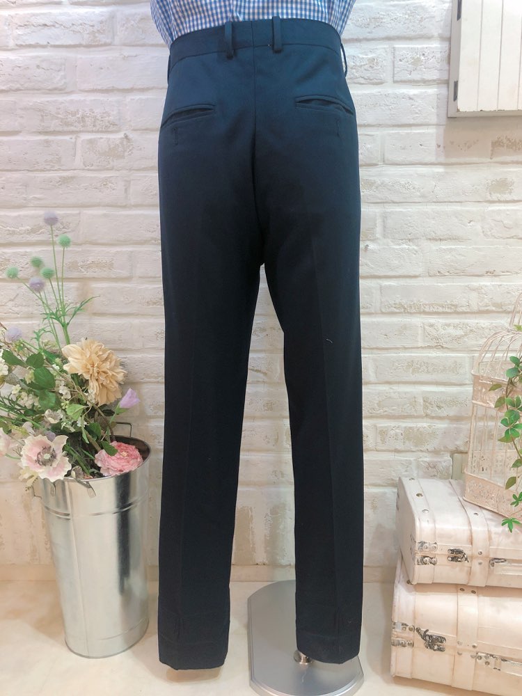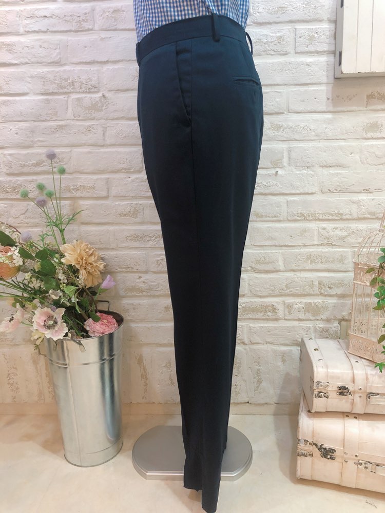 ネイビーのカジュアルパンツ。トップスには、チェック柄のシャツや、ベストなど合わせるとより一層おしゃれなカジュアルタキシードコーディネートになります。二次会や1.5次会、ビーチウェディング、レストランウェディング、ガーデンウェディング、様々なシーンでご利用頂けます。また、カジュアルスタイルの前撮り写真撮影にもおすすめ致します。柔らかな素材感なので長時間着ていても負担は少ないと思います。普段LLサイズの方におすすめです。
