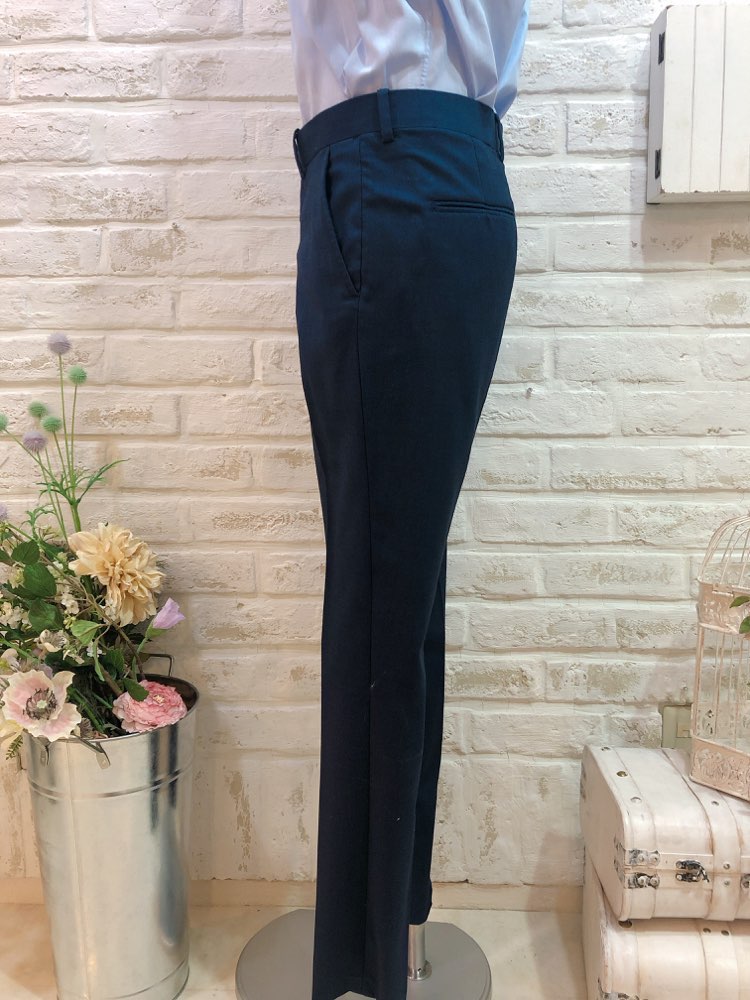 ネイビーのカジュアルパンツ。トップスには、チェック柄のシャツや、ベストなど合わせるとより一層おしゃれなカジュアルタキシードコーディネートになります。二次会や1.5次会、ビーチウェディング、レストランウェディング、ガーデンウェディング、様々なシーンでご利用頂けます。また、カジュアルスタイルの前撮り写真撮影にもおすすめ致します。柔らかな素材感なので長時間着ていても負担は少ないと思います。