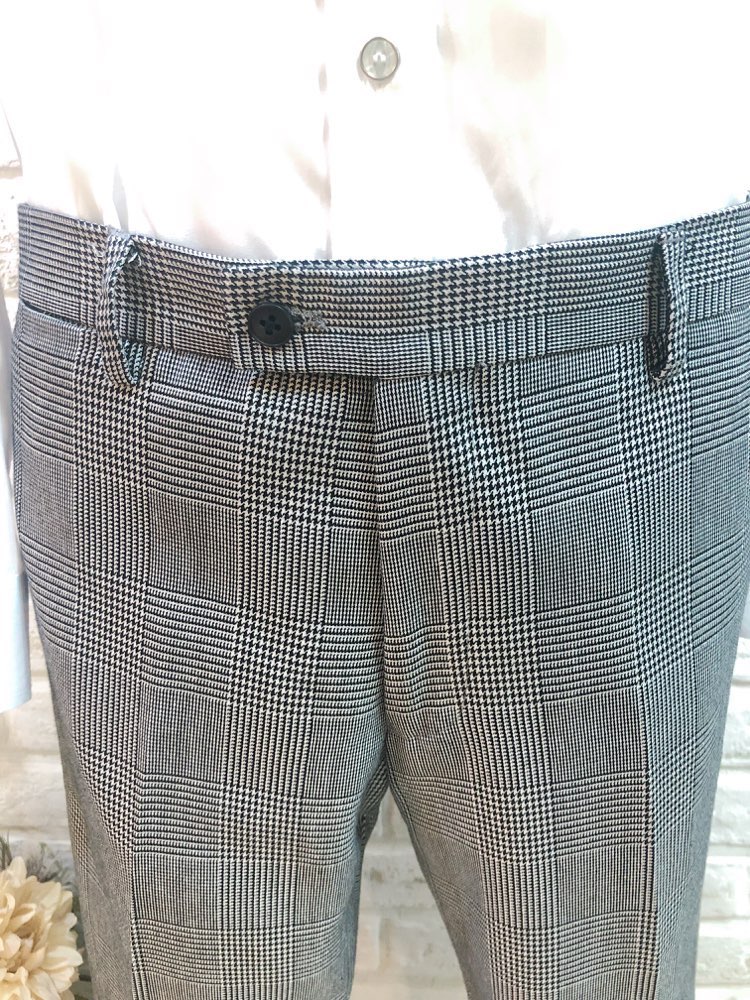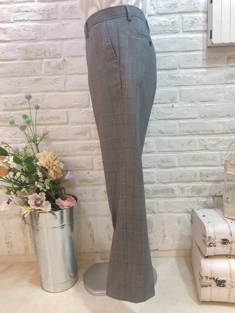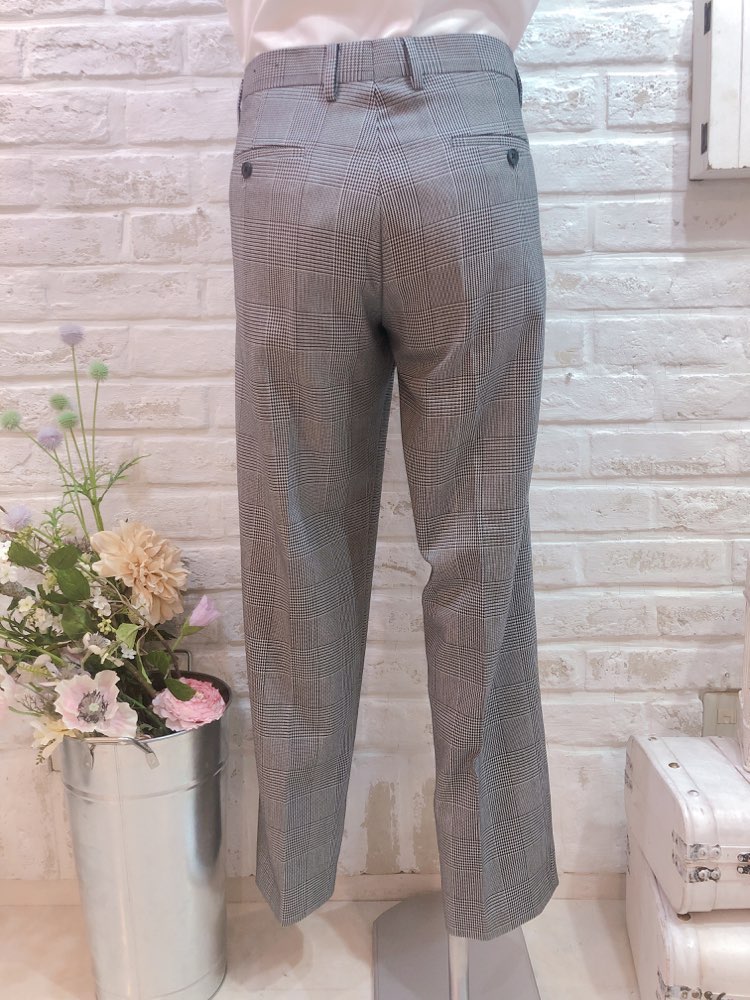 グレンチェック柄のカジュアルパンツ。トップスには、カラーのシャツや、ベストなど合わせるとより一層おしゃれなカジュアルタキシードコーディネートになります。二次会や1.5次会、ビーチウェディング、レストランウェディング、ガーデンウェディング、様々なシーンでご利用頂けます。また、カジュアルスタイルの前撮り写真撮影にもおすすめ致します。柔らかな素材感なので長時間着ていても負担は少ないと思います。秋冬におすすめのパンツです。