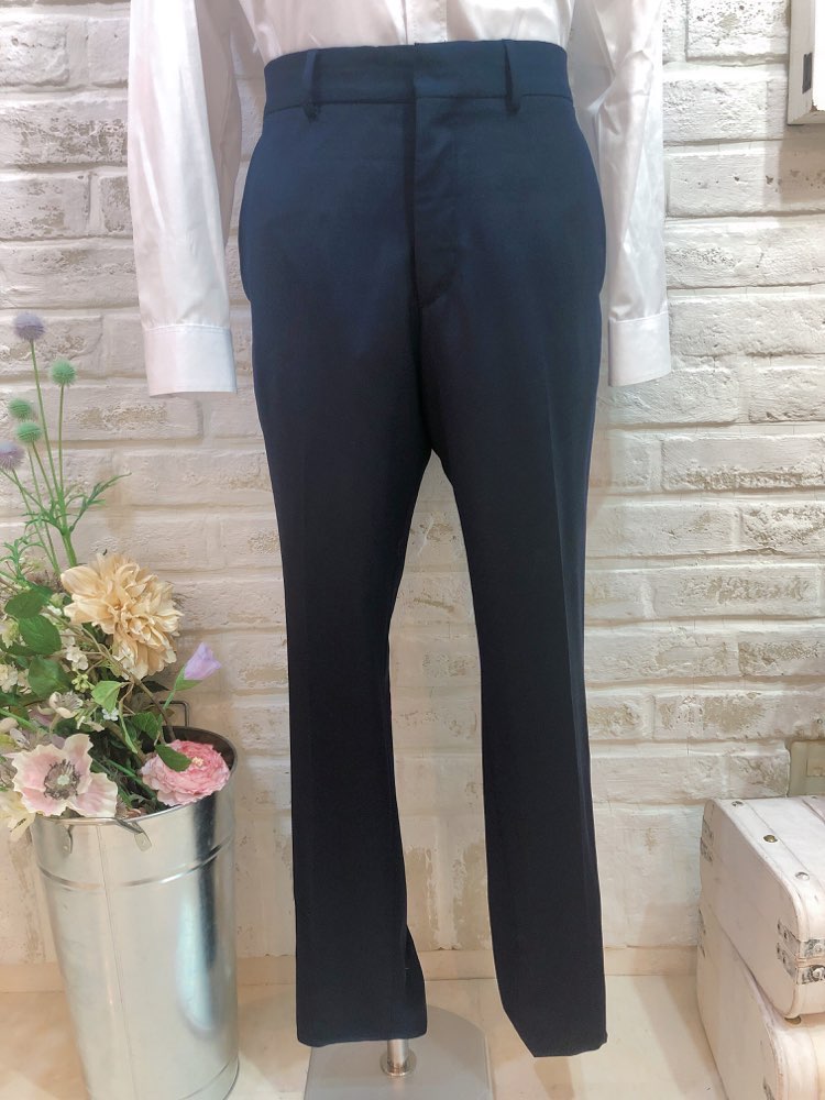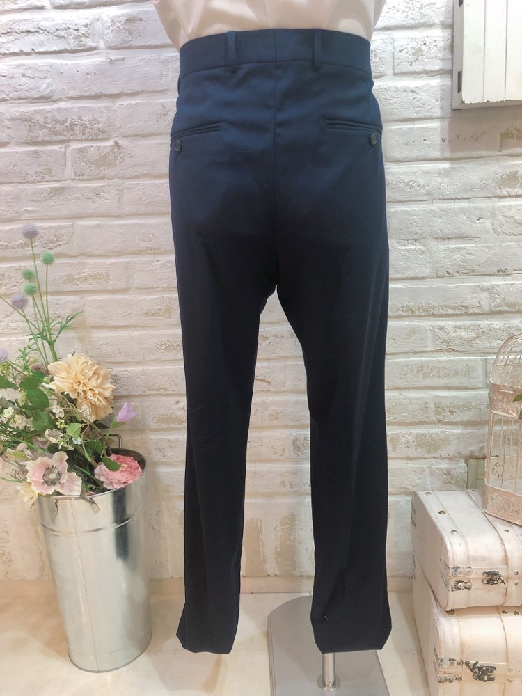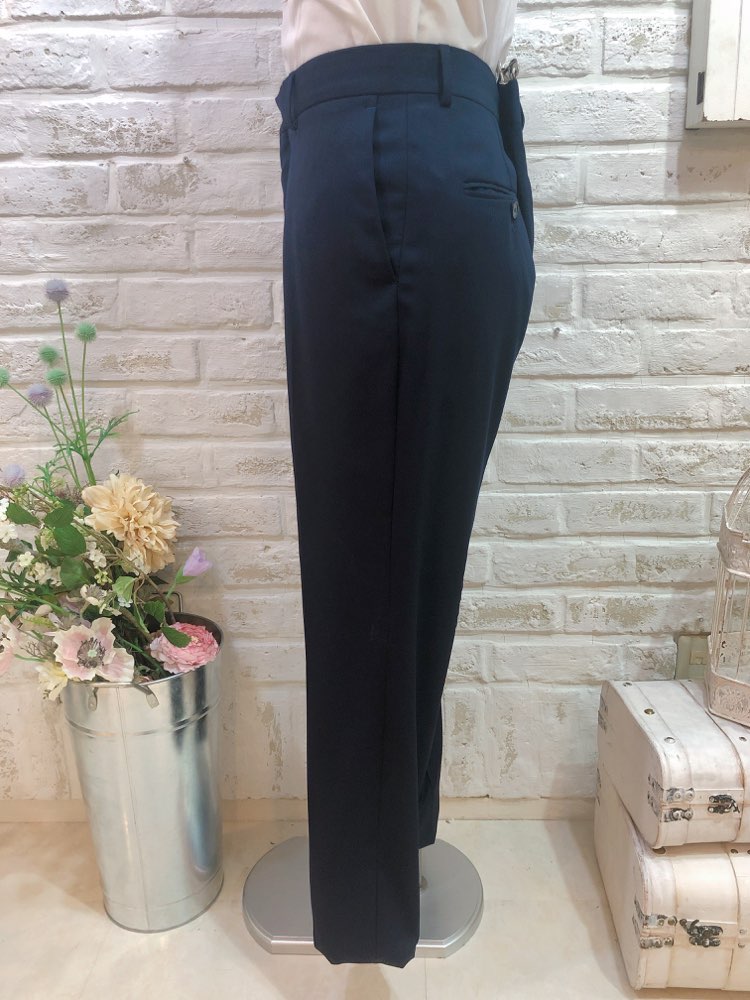 ネイビー無地のシンプルパンツ。トップスには、柄やカラーのシャツや、ベストなど合わせるとより一層おしゃれなカジュアルタキシードコーディネートになります。二次会や1.5次会、ビーチウェディング、レストランウェディング、ガーデンウェディング、様々なシーンでご利用頂けます。また、カジュアルスタイルの前撮り写真撮影にもおすすめ致します。柔らかな素材感なので長時間着ていても負担は少ないと思います。