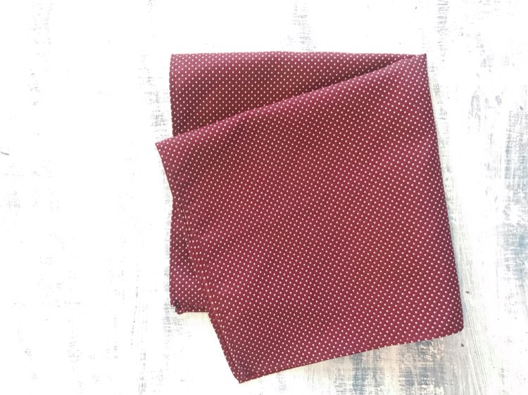 ボルドー地に細かな白のドットが散りばめられたポケットチーフです。派手すぎるものは苦手…でもせっかくなら無地はつまらないし…といった方や、「ポケットチーフ初心者さん」にも使い易いこちらのチーフ。主張しすぎないデザインが、幅広い年代に愛され、さりげなく上品に胸元を彩ってくれます。色違いでネイビー×白ドットもございます。