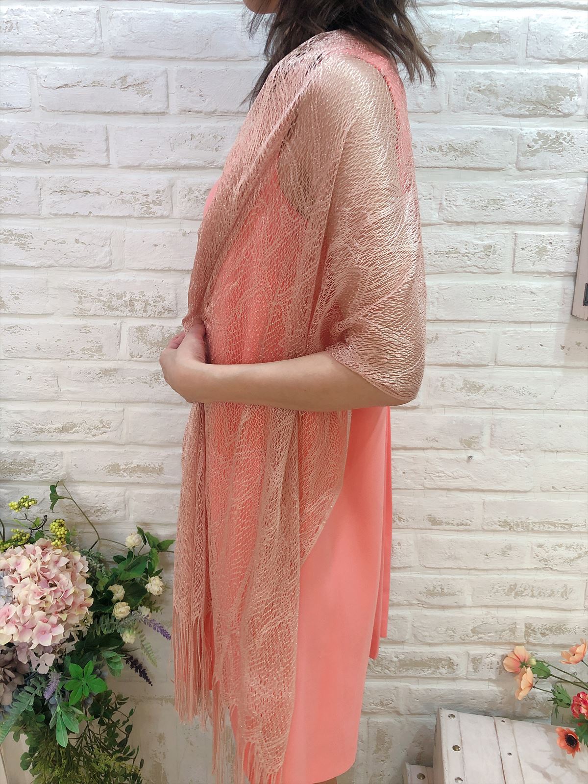 細網ライトピンクラメのキラキラストール