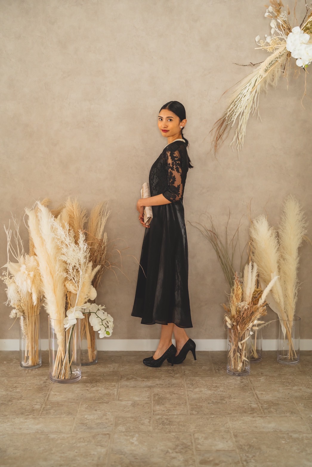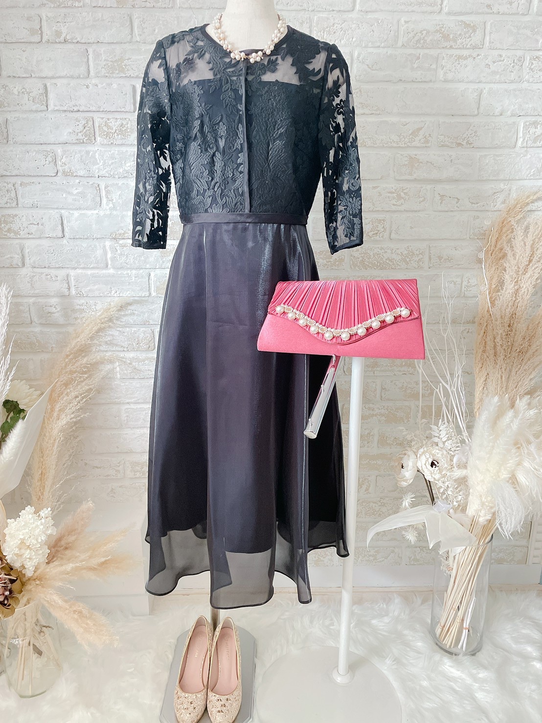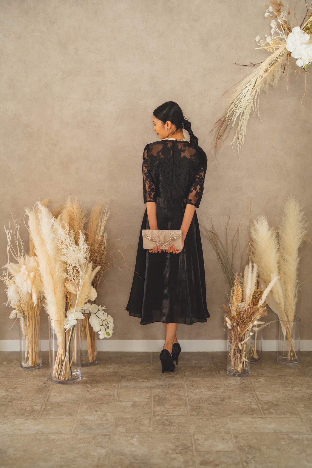 チャイナ風ミモレ丈Aライン・マザードレスドレス