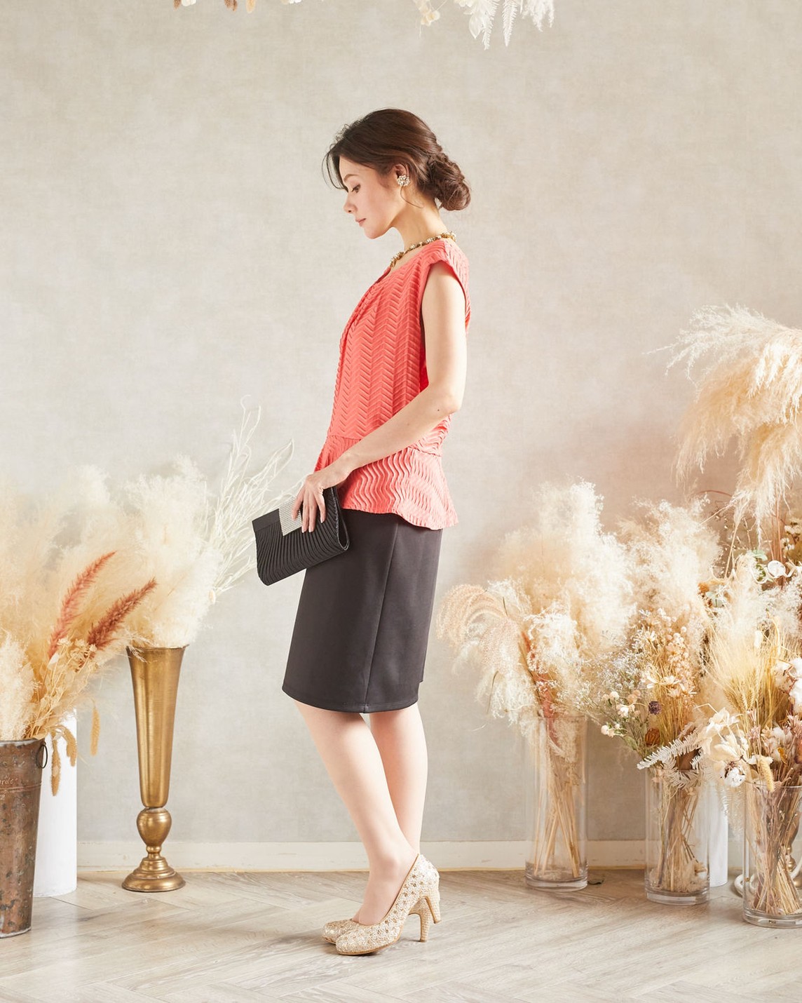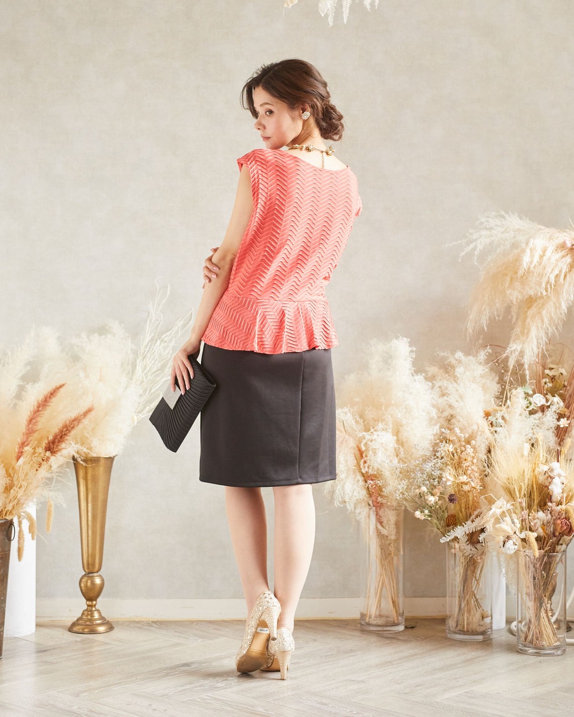 オレンジ×黒バイカラーフレンチスリーブドレス