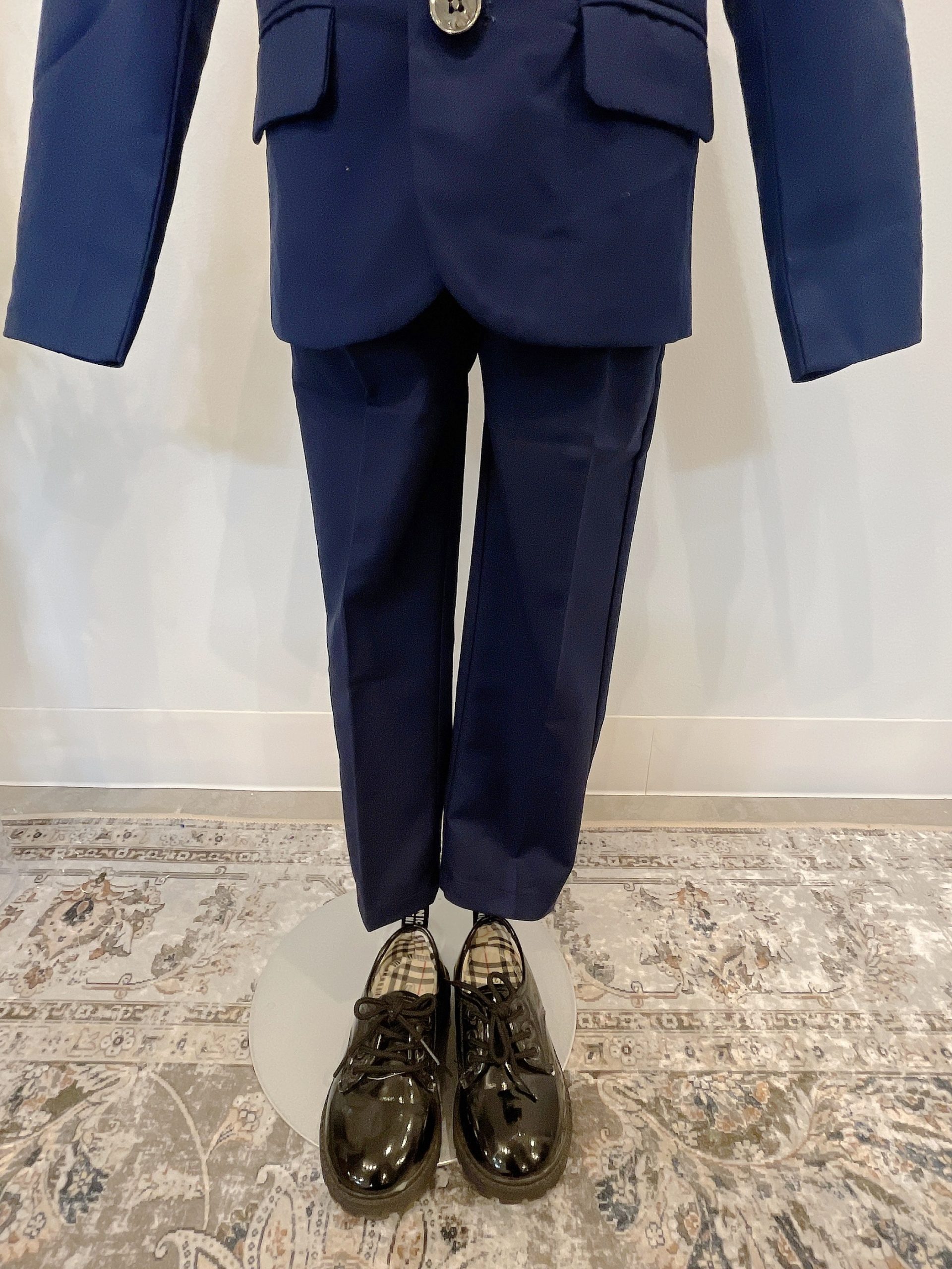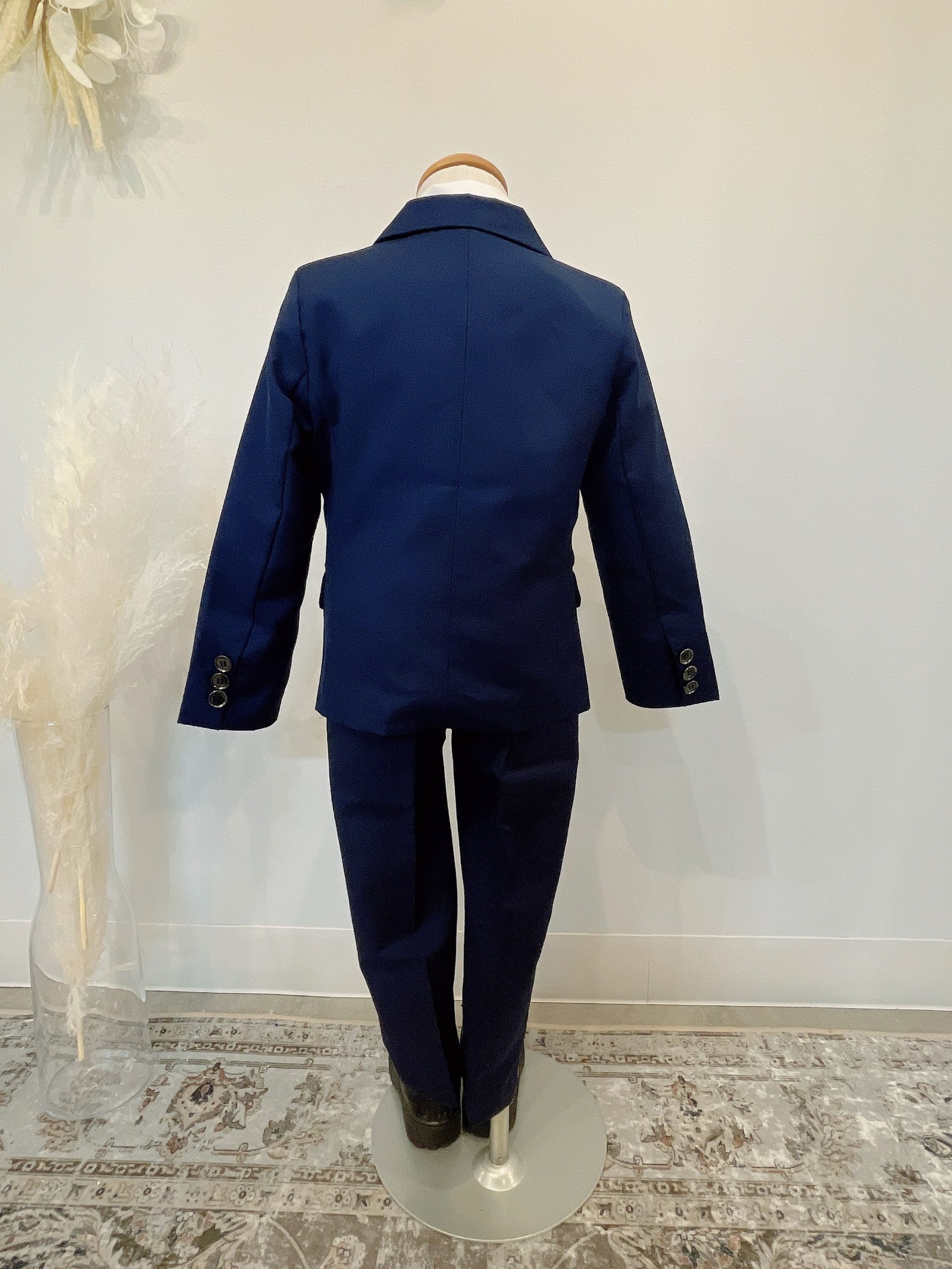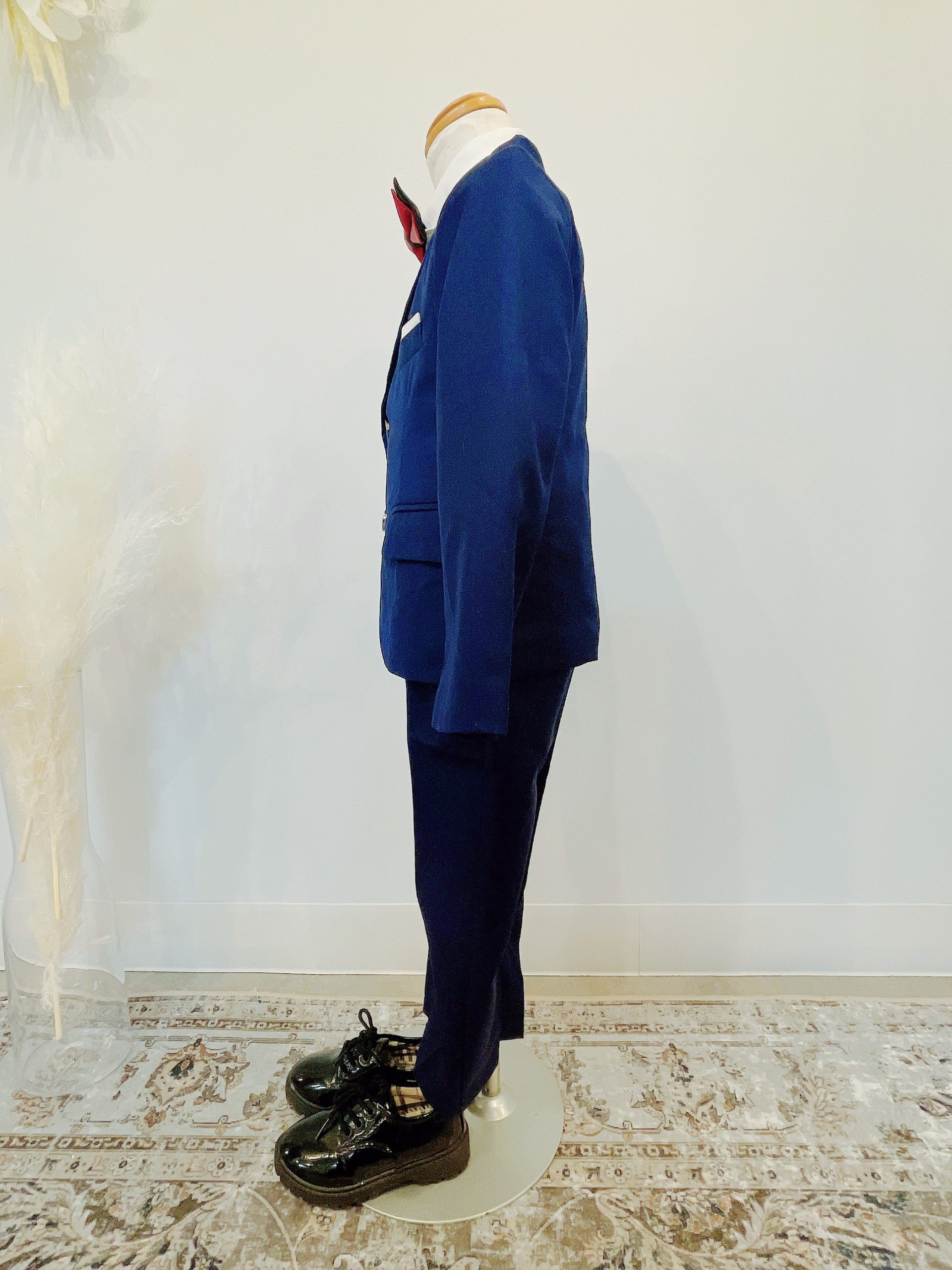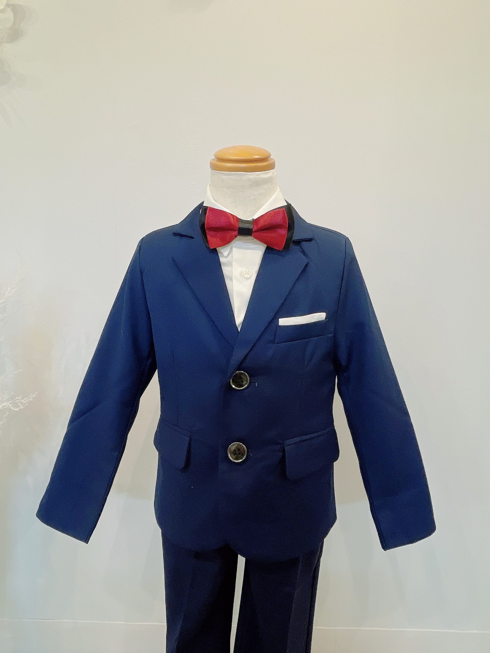 ネイビー光沢キッズタキシード3ピース(ジャケット・パンツ・ベスト・タイ付)120cm