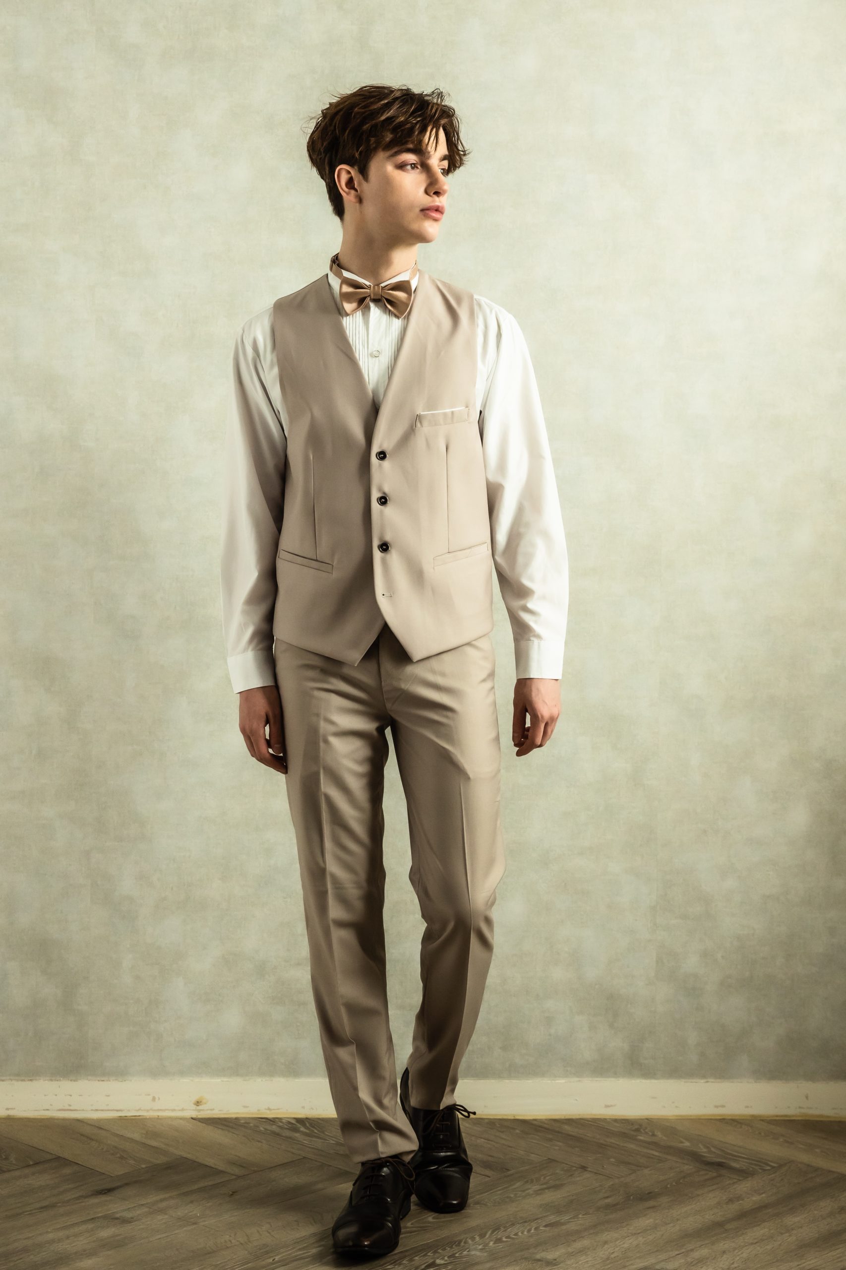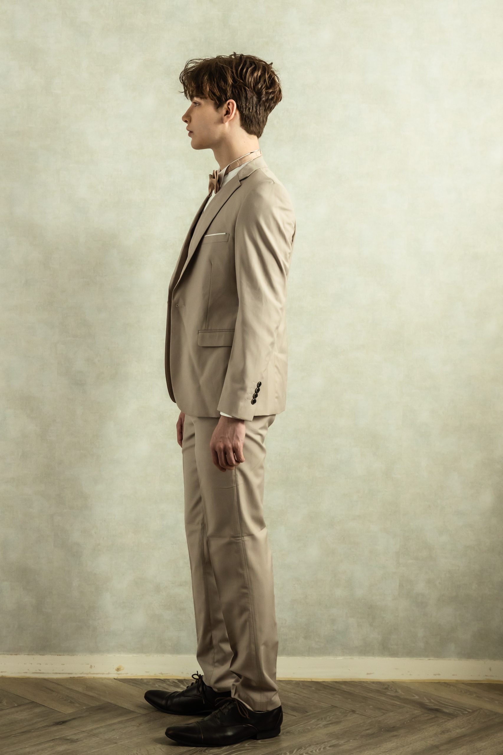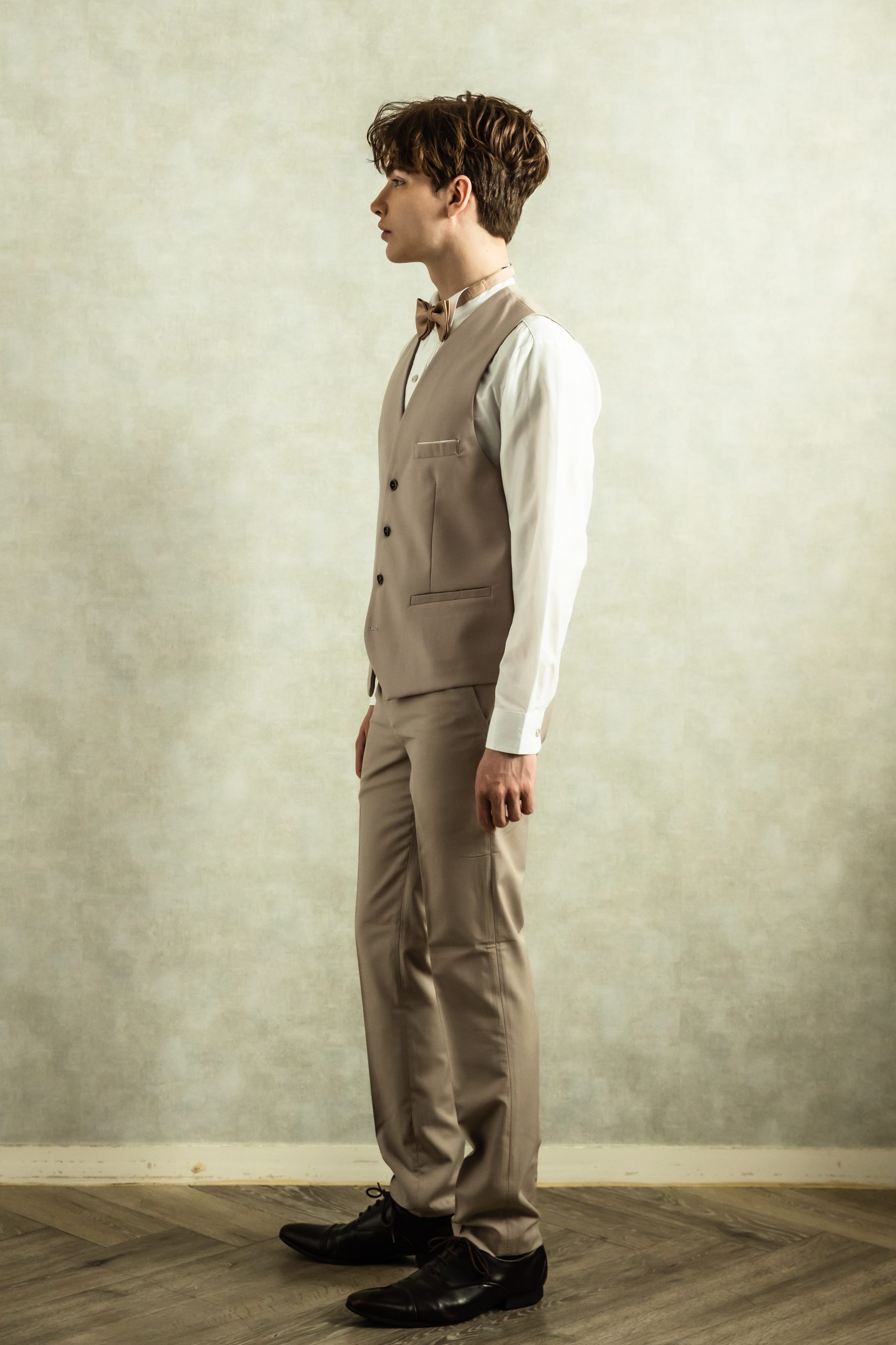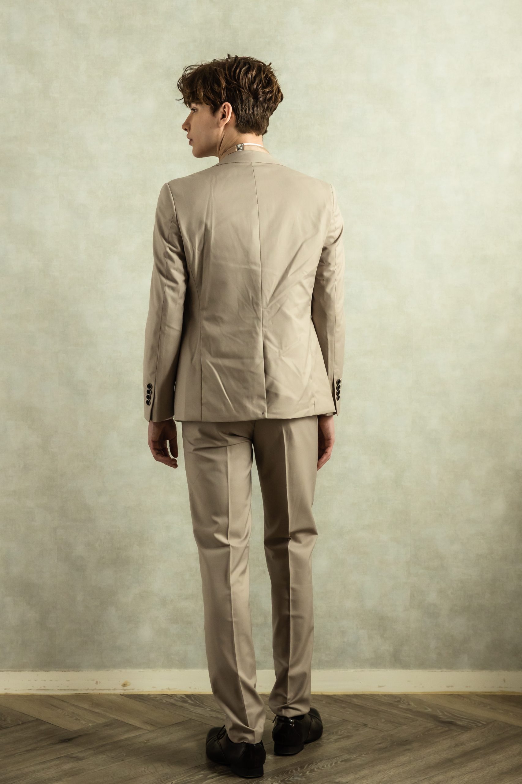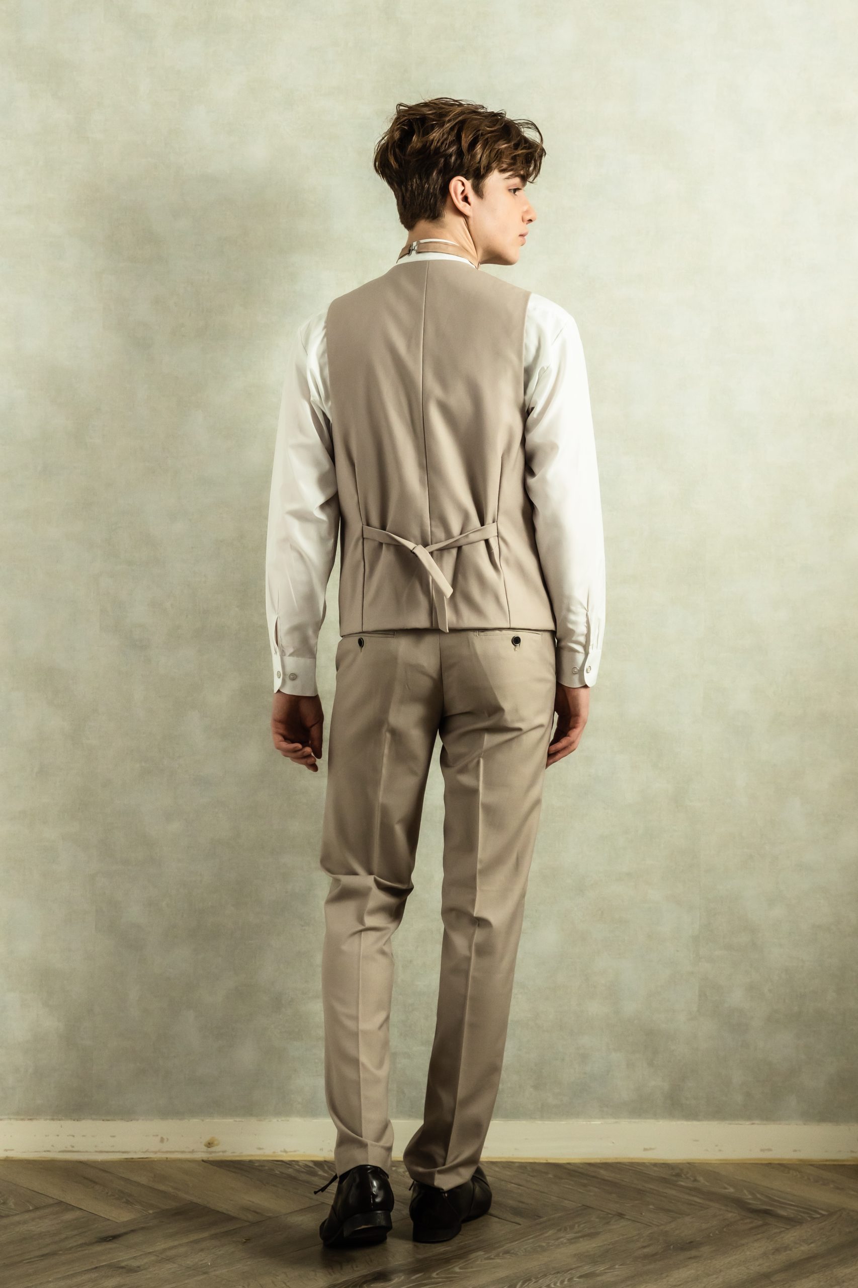 【スリーピースセットアップ】ベージュタキシード M