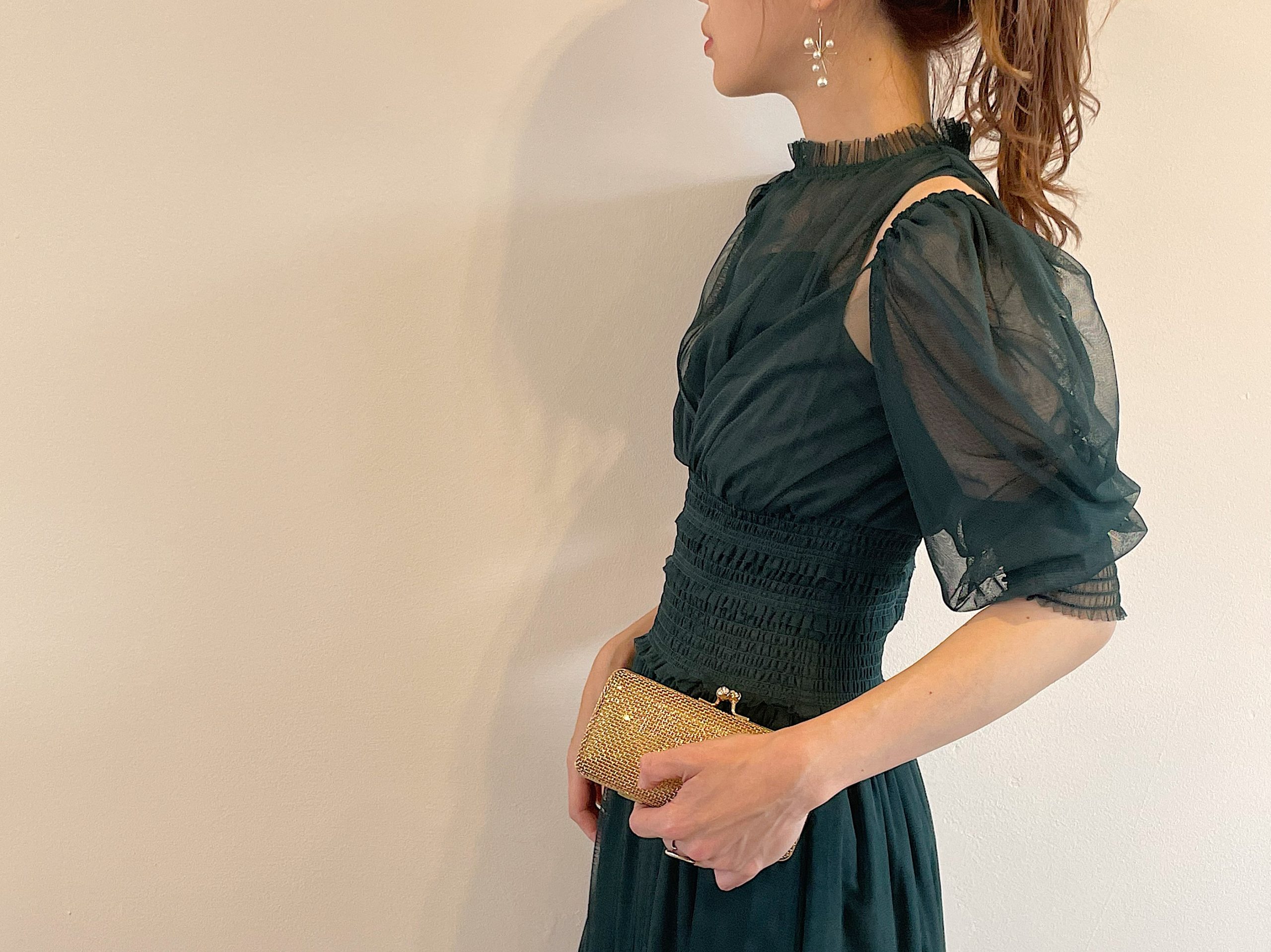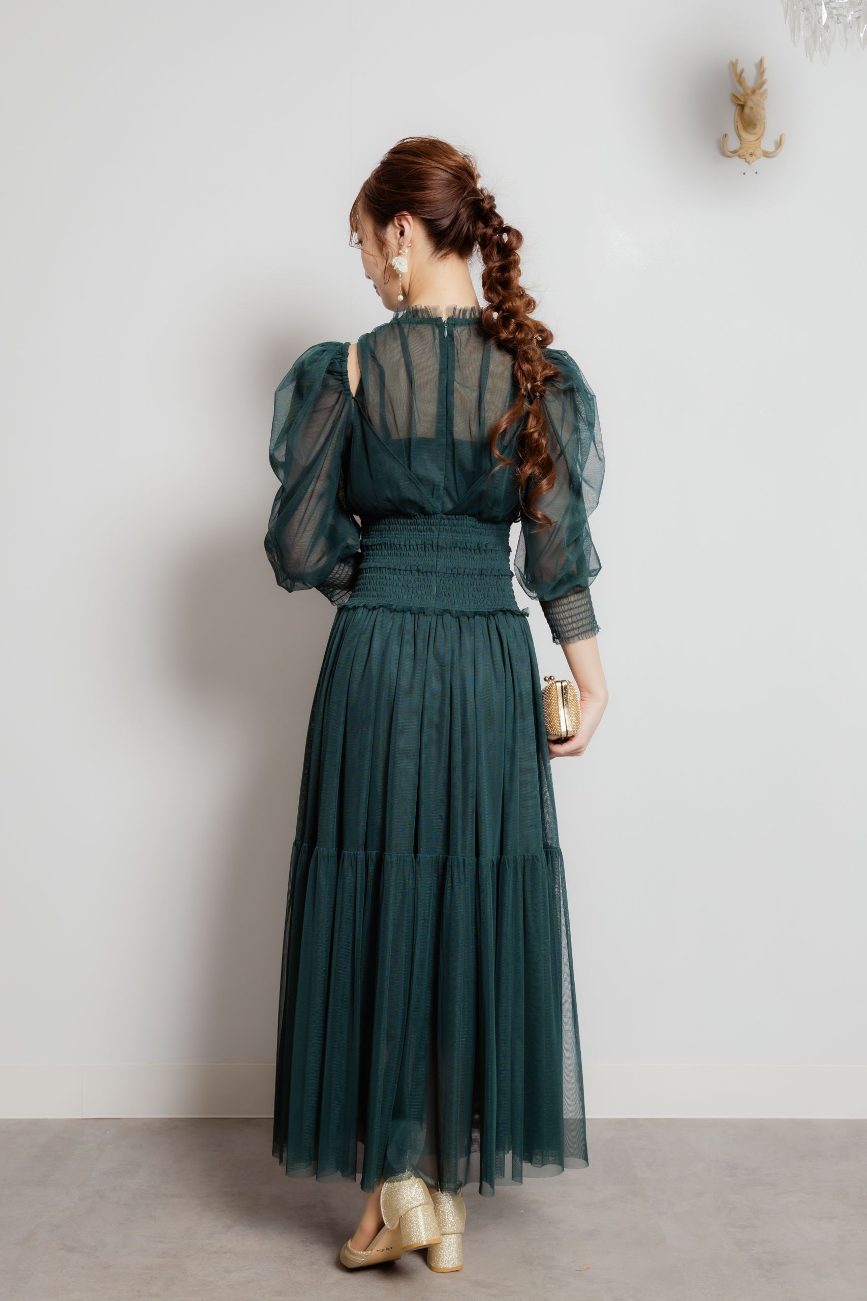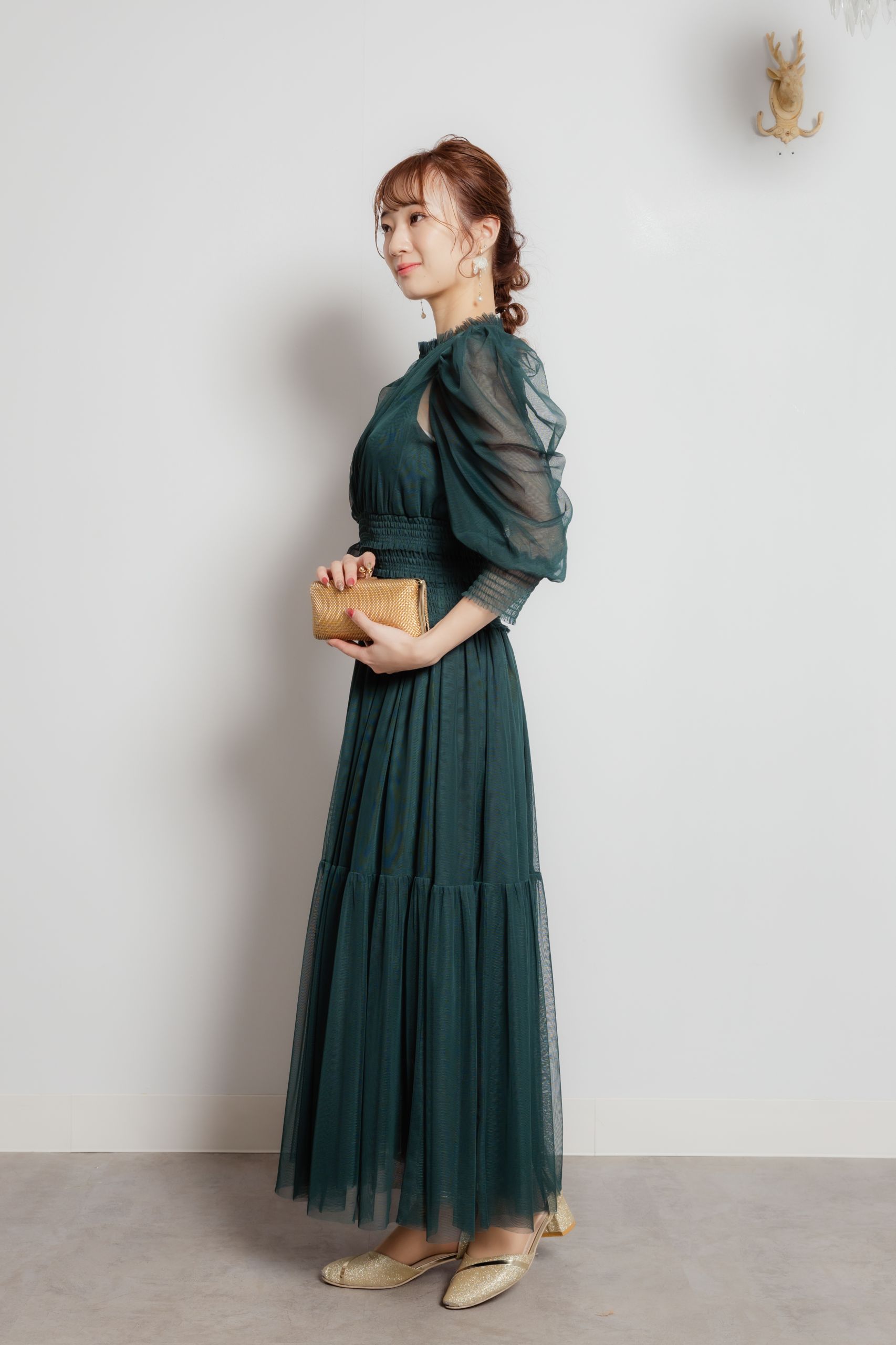 フォレストグリーン深緑 チュールレースドレス XS-S-M