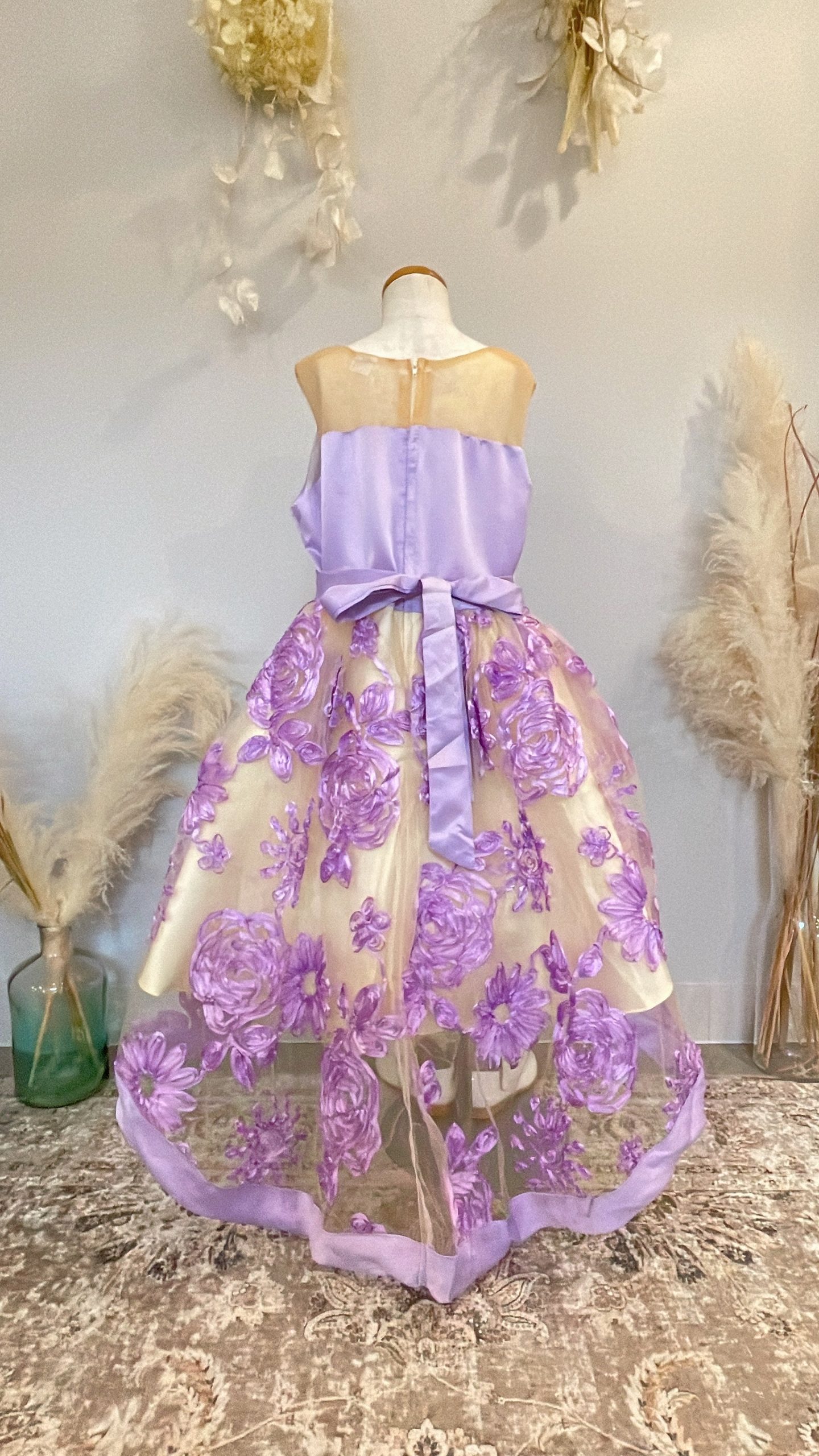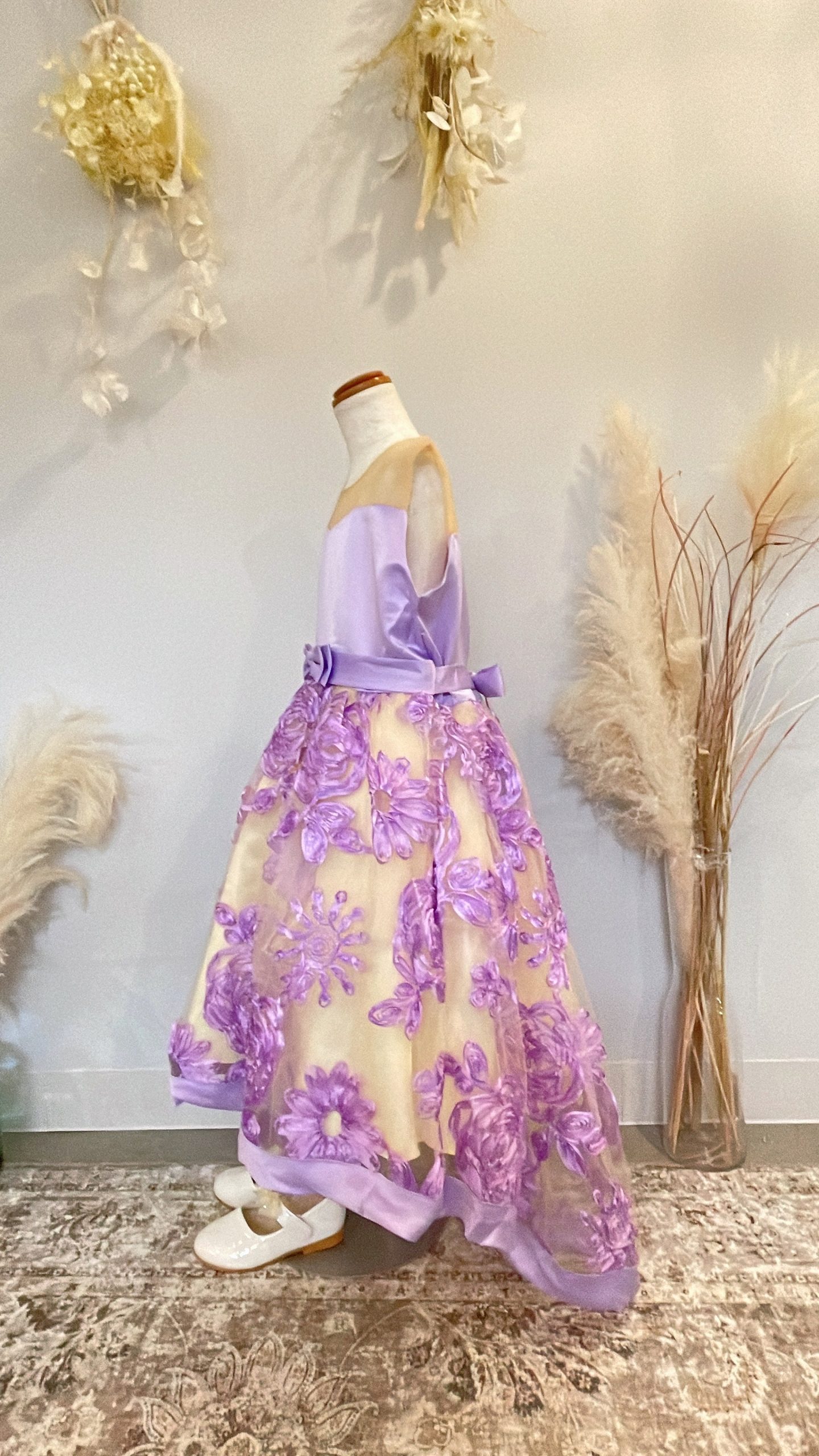 ラベンダーお花柄イレヘムキッズドレス140cm〜150cm