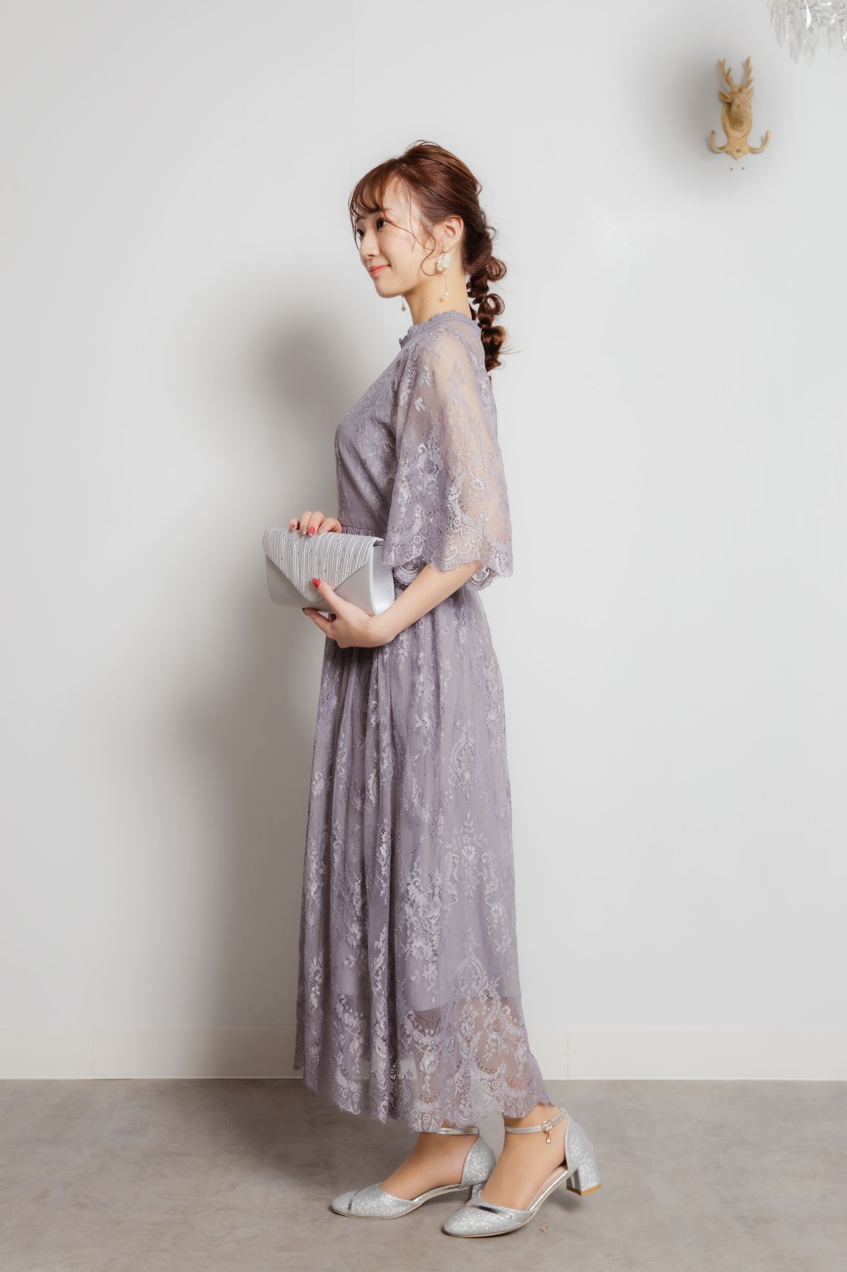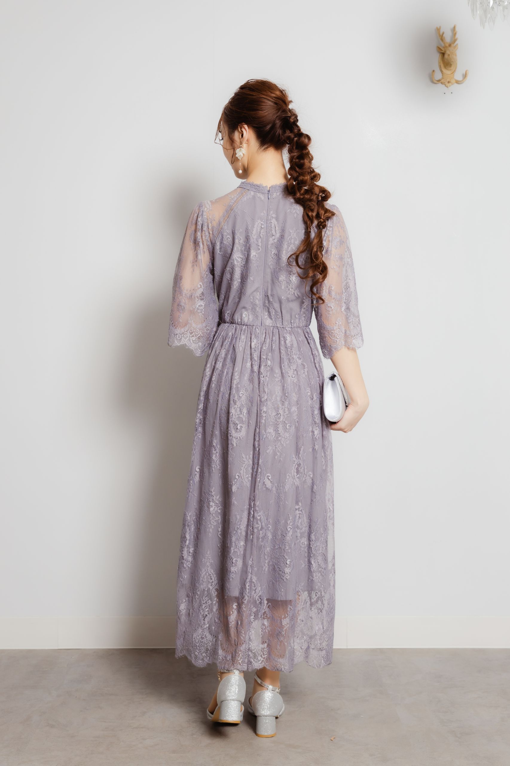 ブルーグレー 5分丈スリーブ総レースドレス L