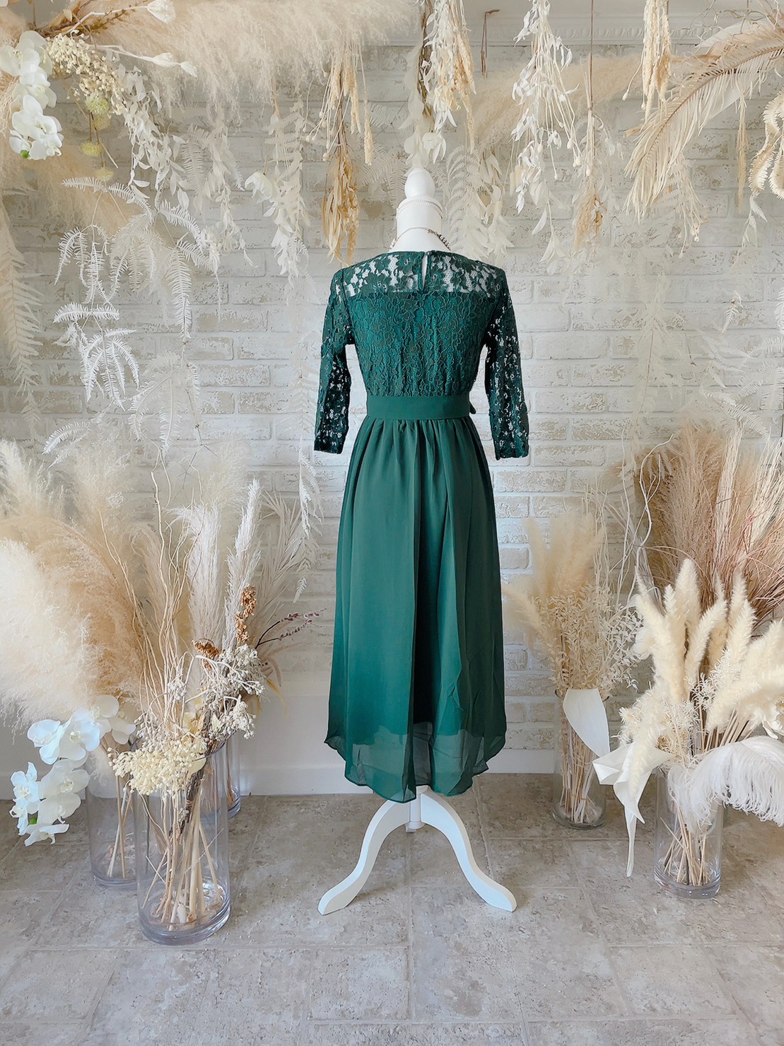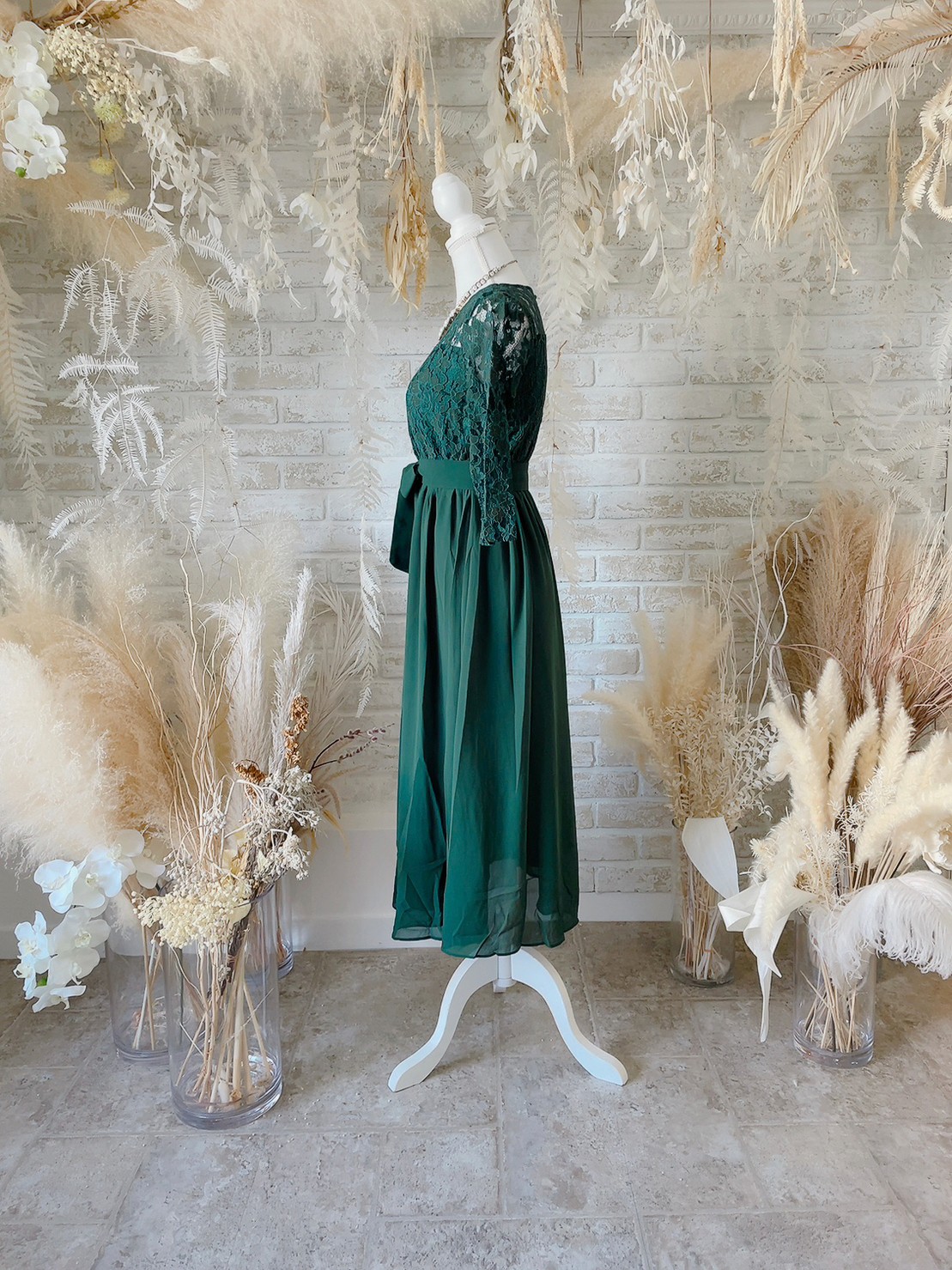 Dark green/ウエスト切り替えシフォンドレス〈S〉