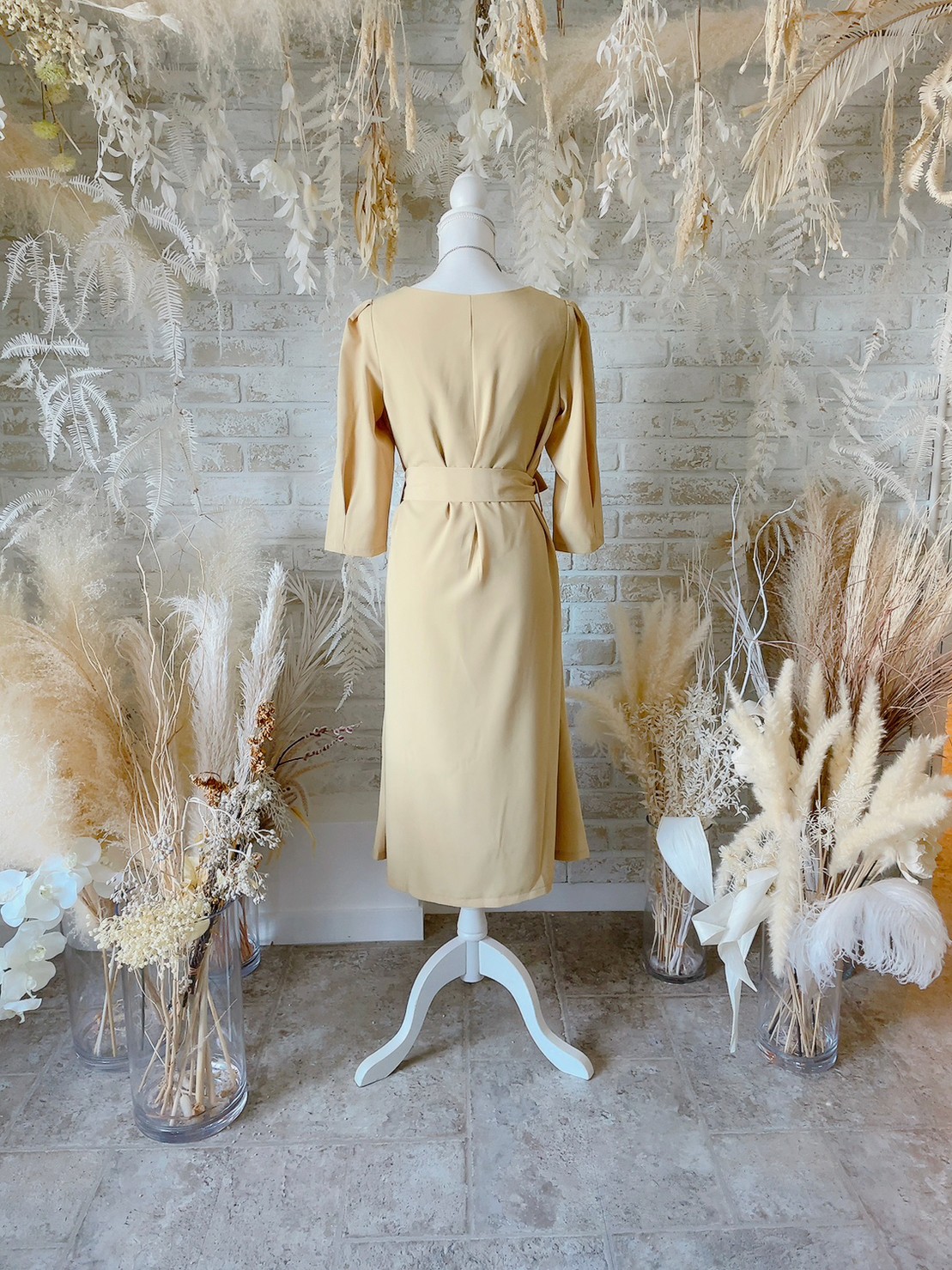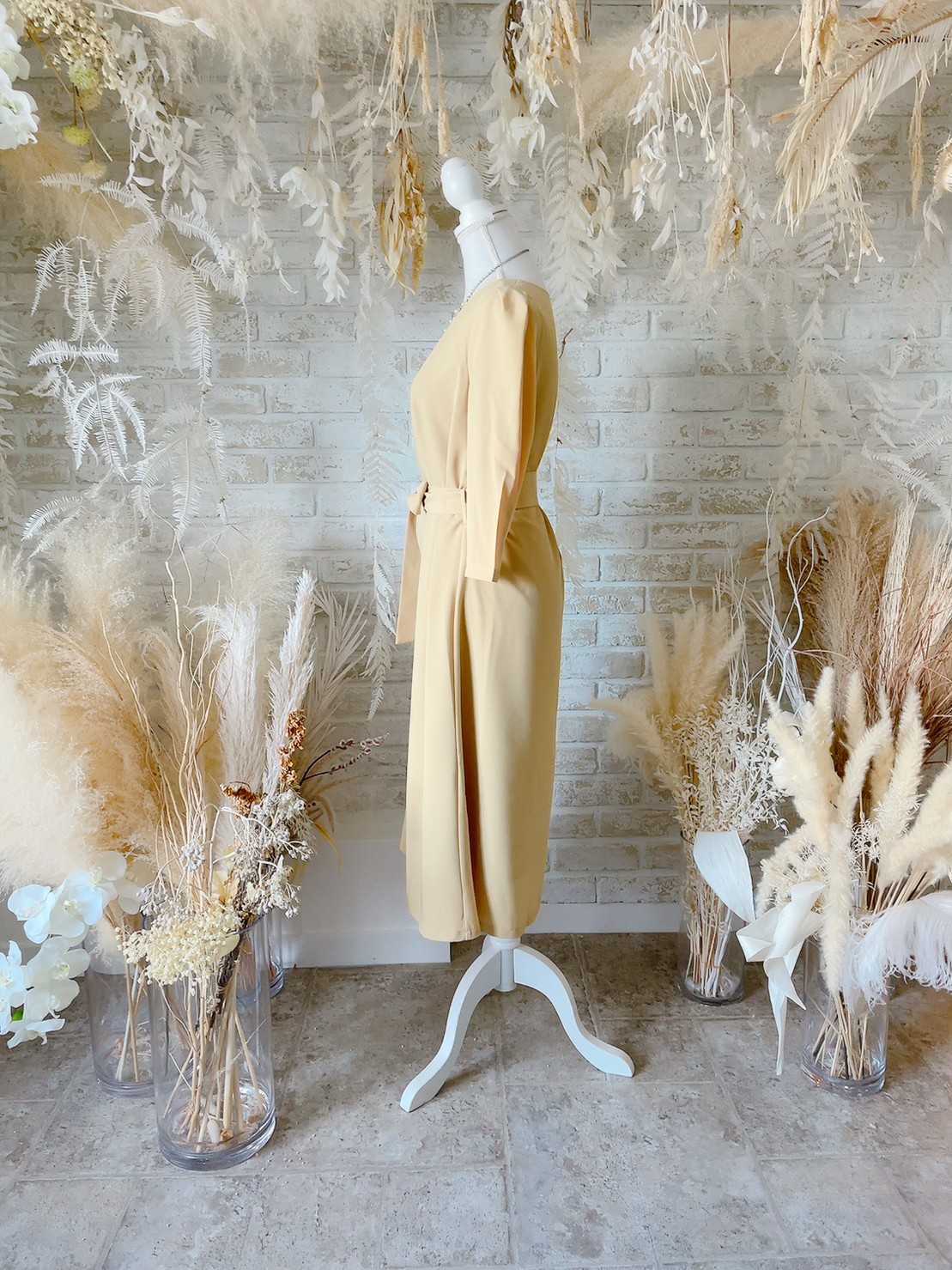 mustard yellow/ウエストリボン付きロングスリーブドレス〈L〉