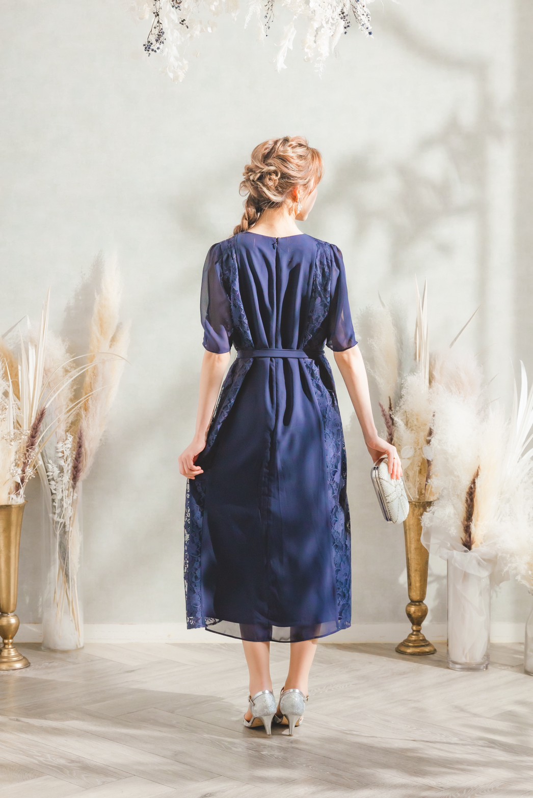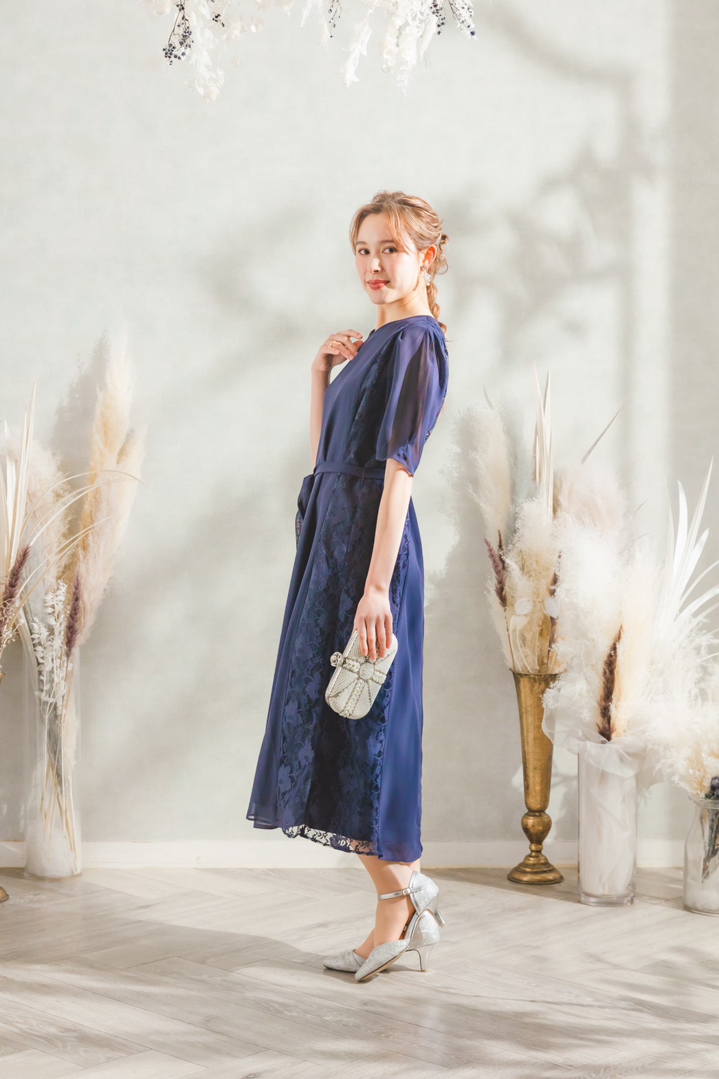 取り外し可能なリボン付きのA ラインワンピース。 リボンは前で結んでも後ろで結んでも◎ サイドレース切り替えでスタイルUP。 結婚式の二次会やパーティー、 食事会、顔合わせなどセレモニーはもちろんデイリーにも活躍するパーティードレスです。