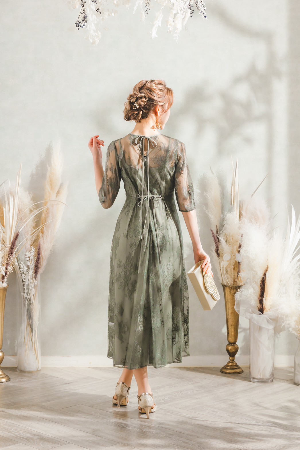 総レースドレスとインナーキャミソールがセットになったツーピースのドレス。