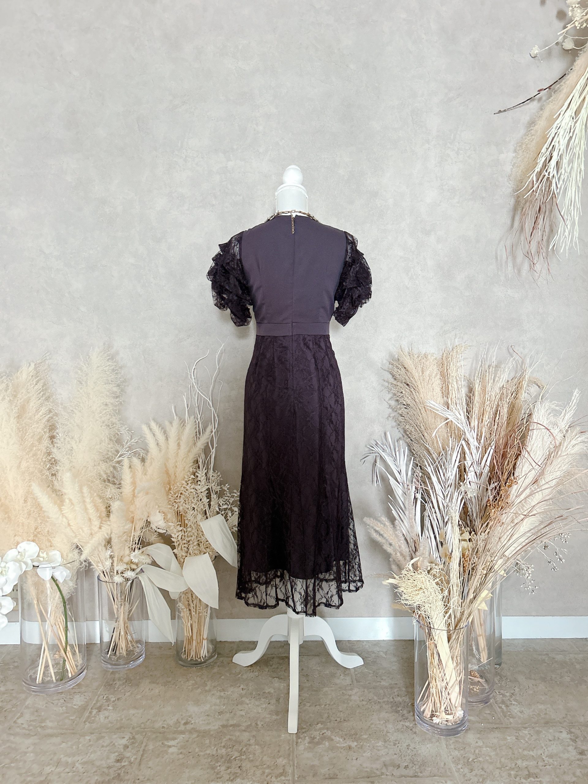 Dark purple/ボリューム袖マーメイドドレス<M>
