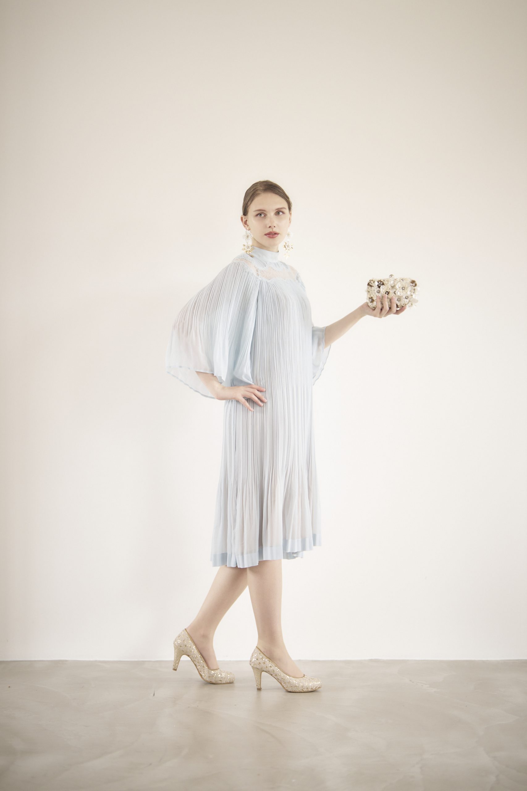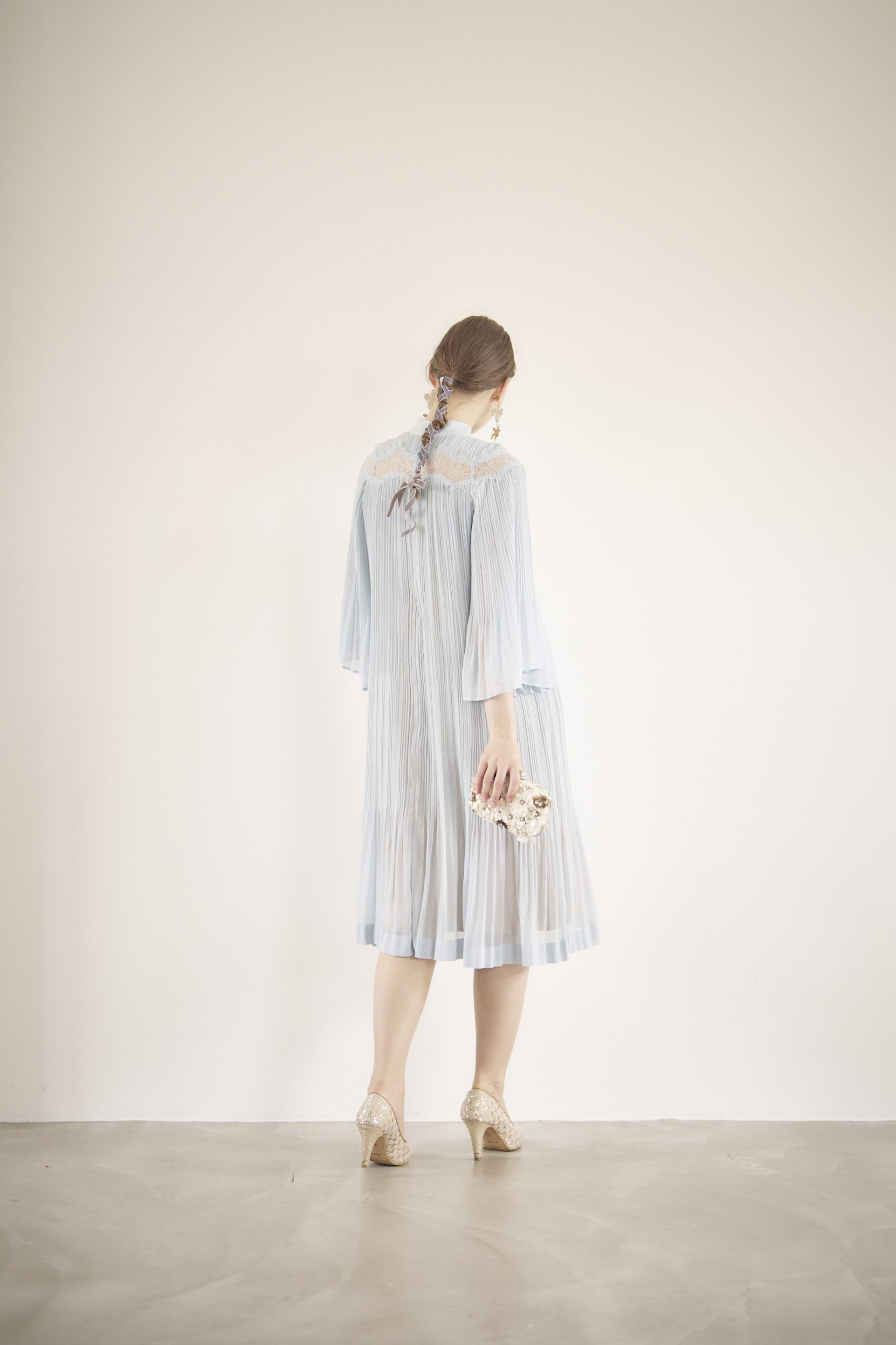 細かいプリーツが女性らしい雰囲気のワンピースドレス。