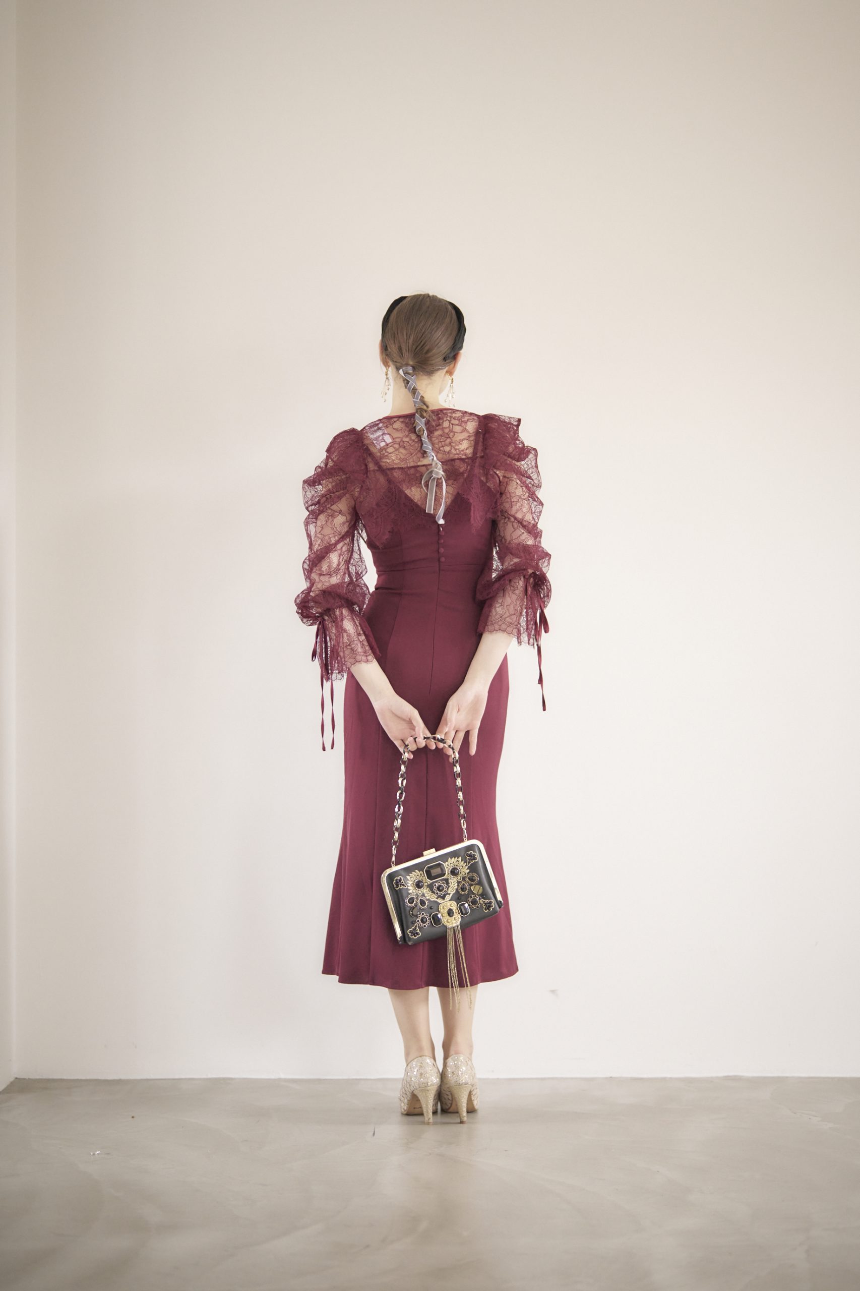 シンプルなバックサテンのキャミソールワンピースに、ドレッシーなレースのボレロを合わせたセットアイテム。オケージョンに最適な華やかかつ上品なデザインで、ヘルシーな肌見せを叶えてくれます。美しいくびれのあるマーメイドシルエットでスタイルアップ効果も絶大。
