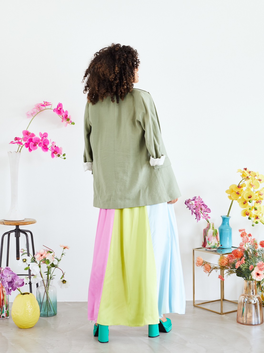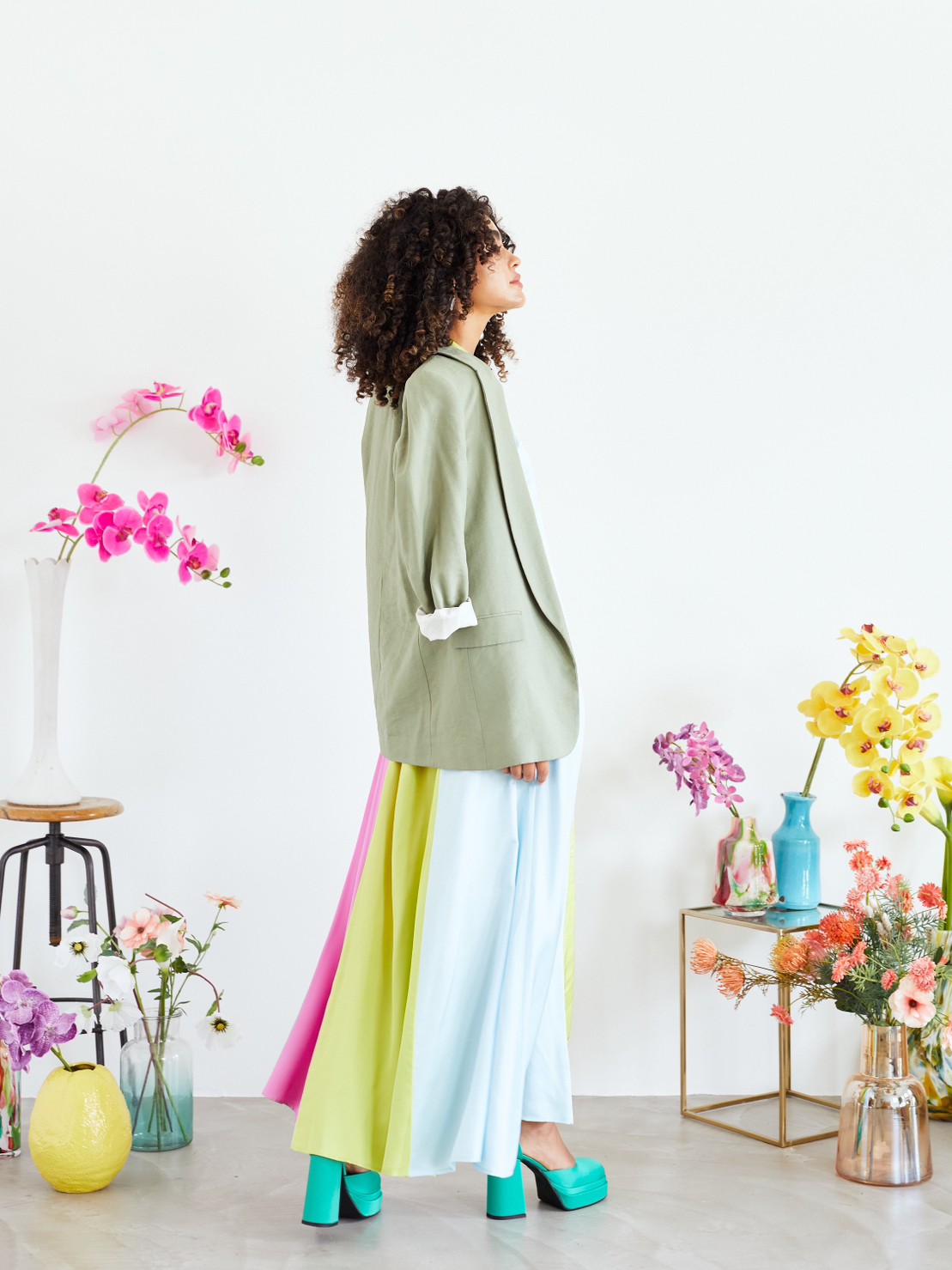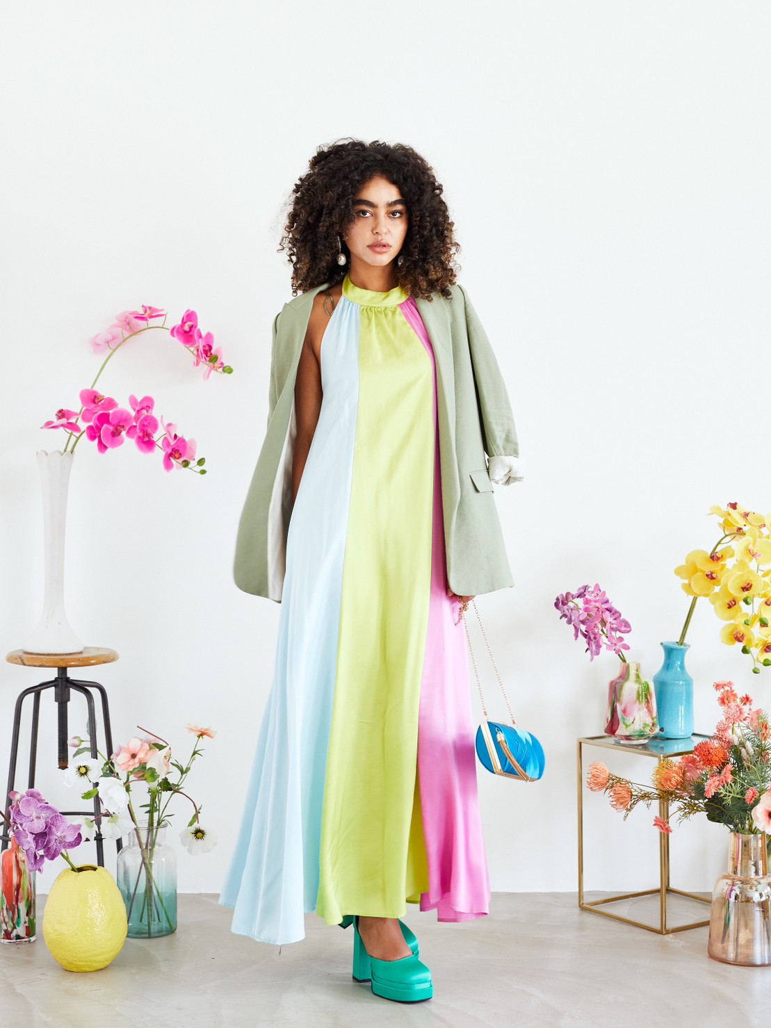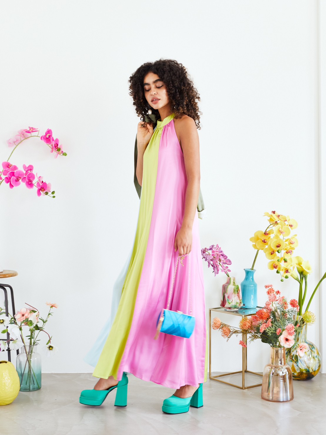 3色カラフルボーダーホルダーネックロングドレス 38 S-M