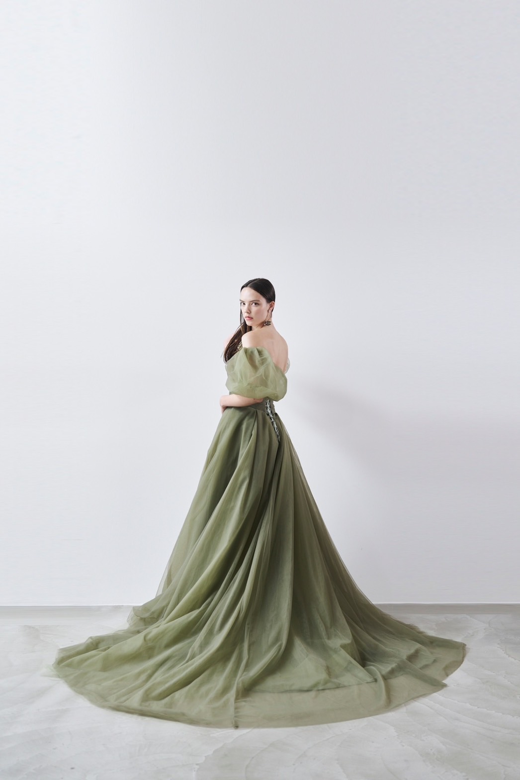 カーキ2wayパフスリーブAライン編上げ9-11号
