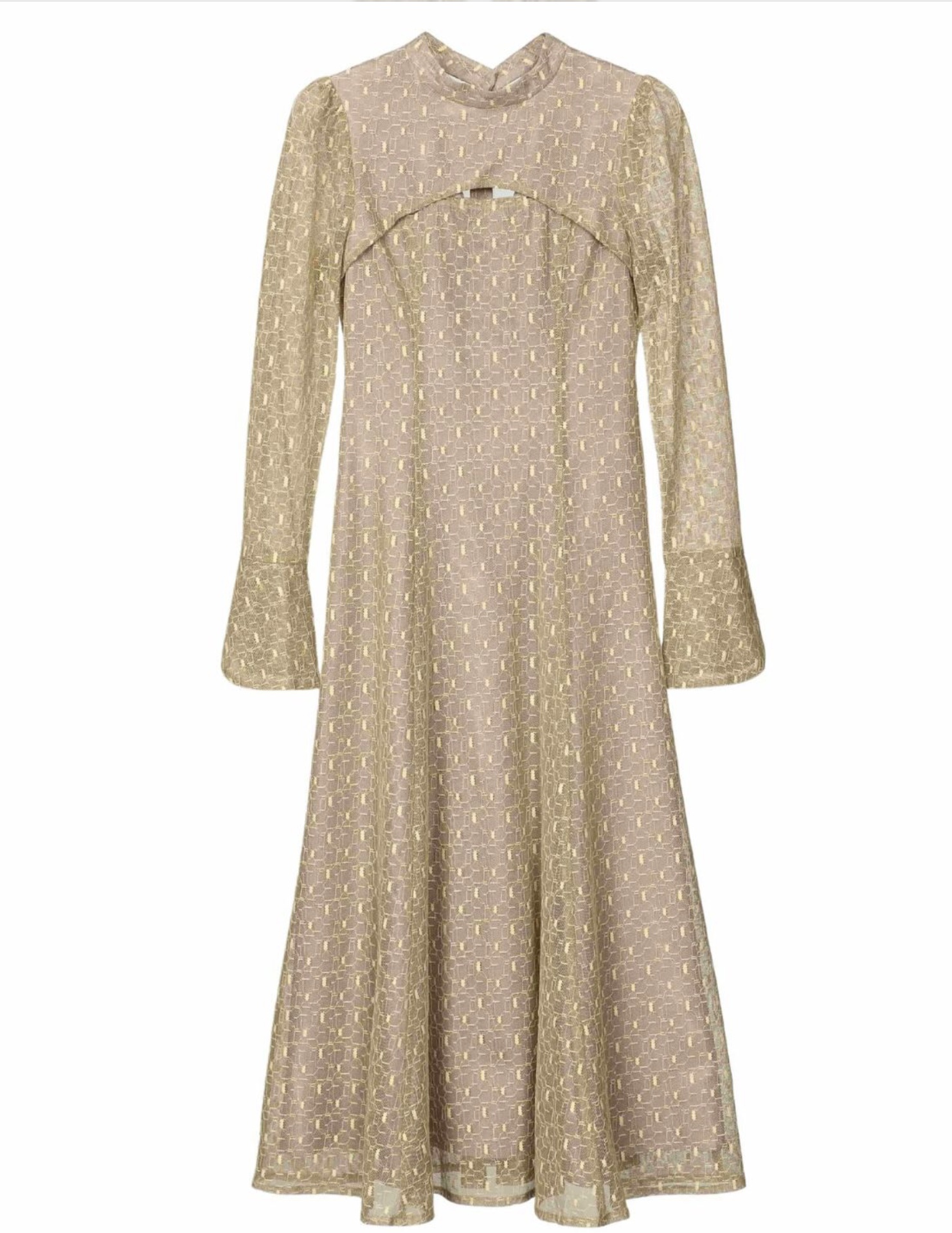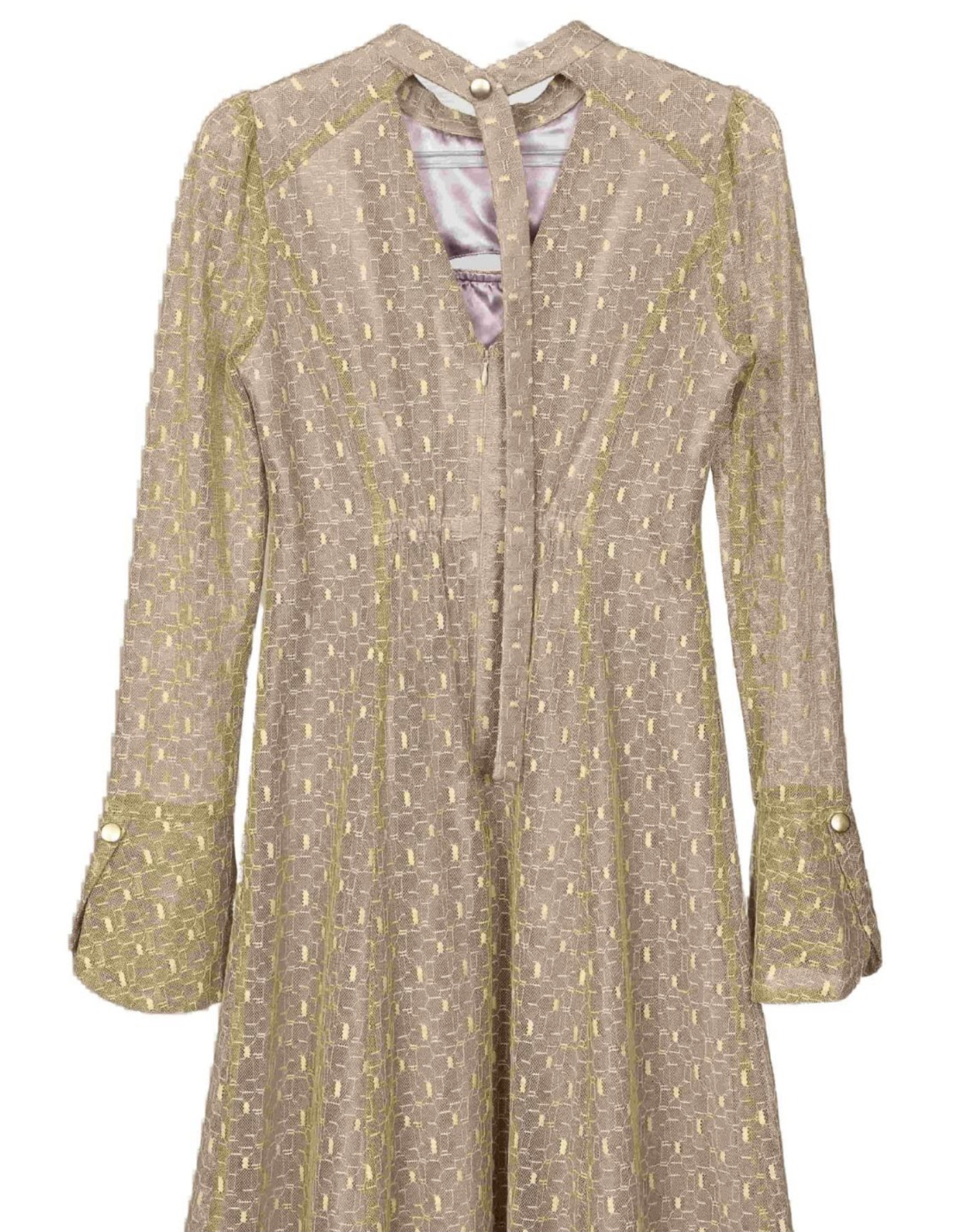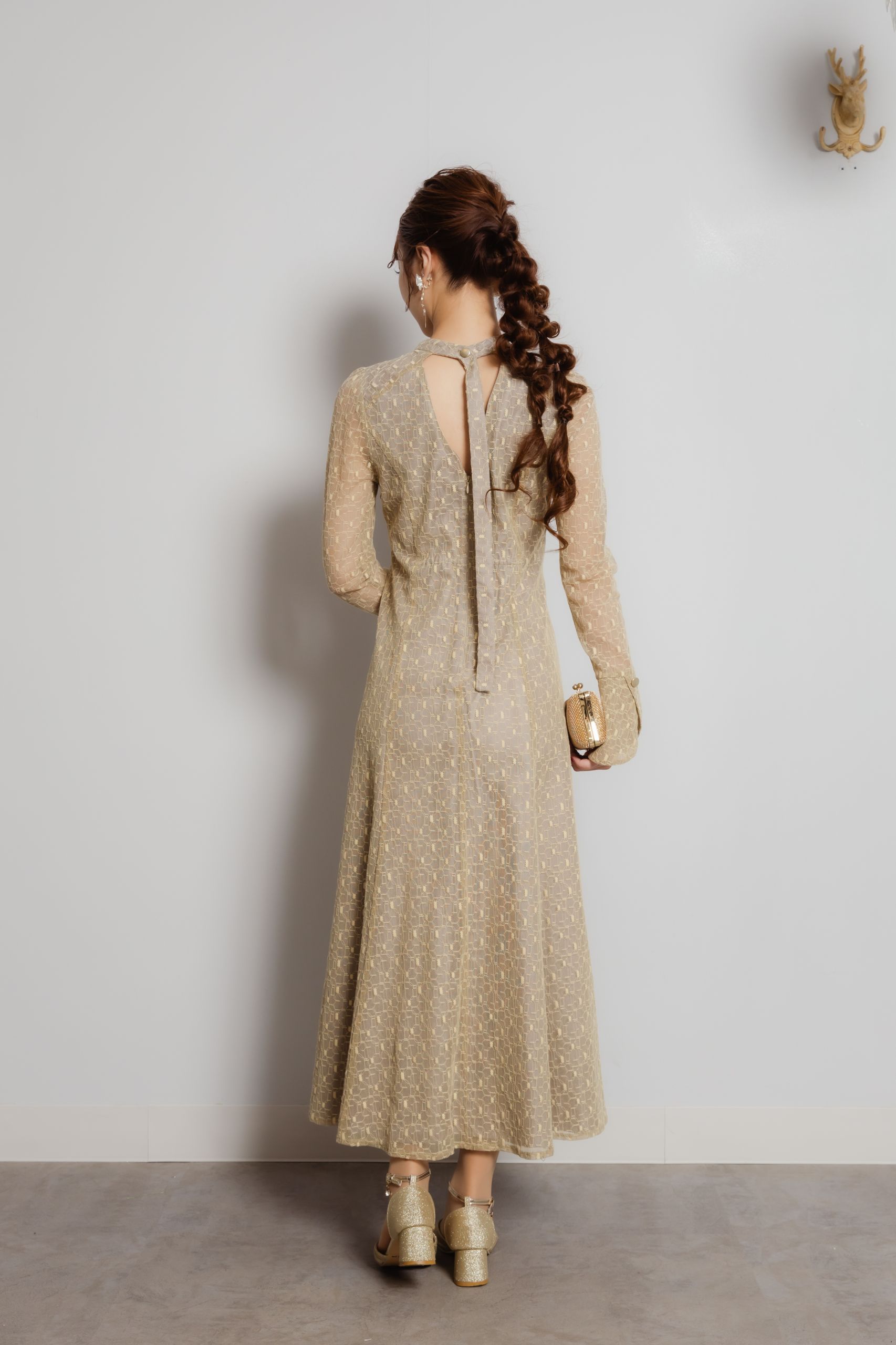 バックオープン幾何学レースドレス イエローM