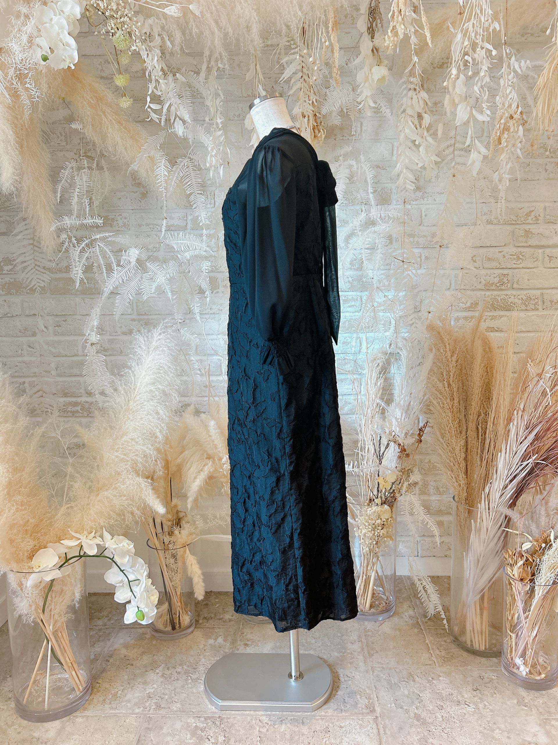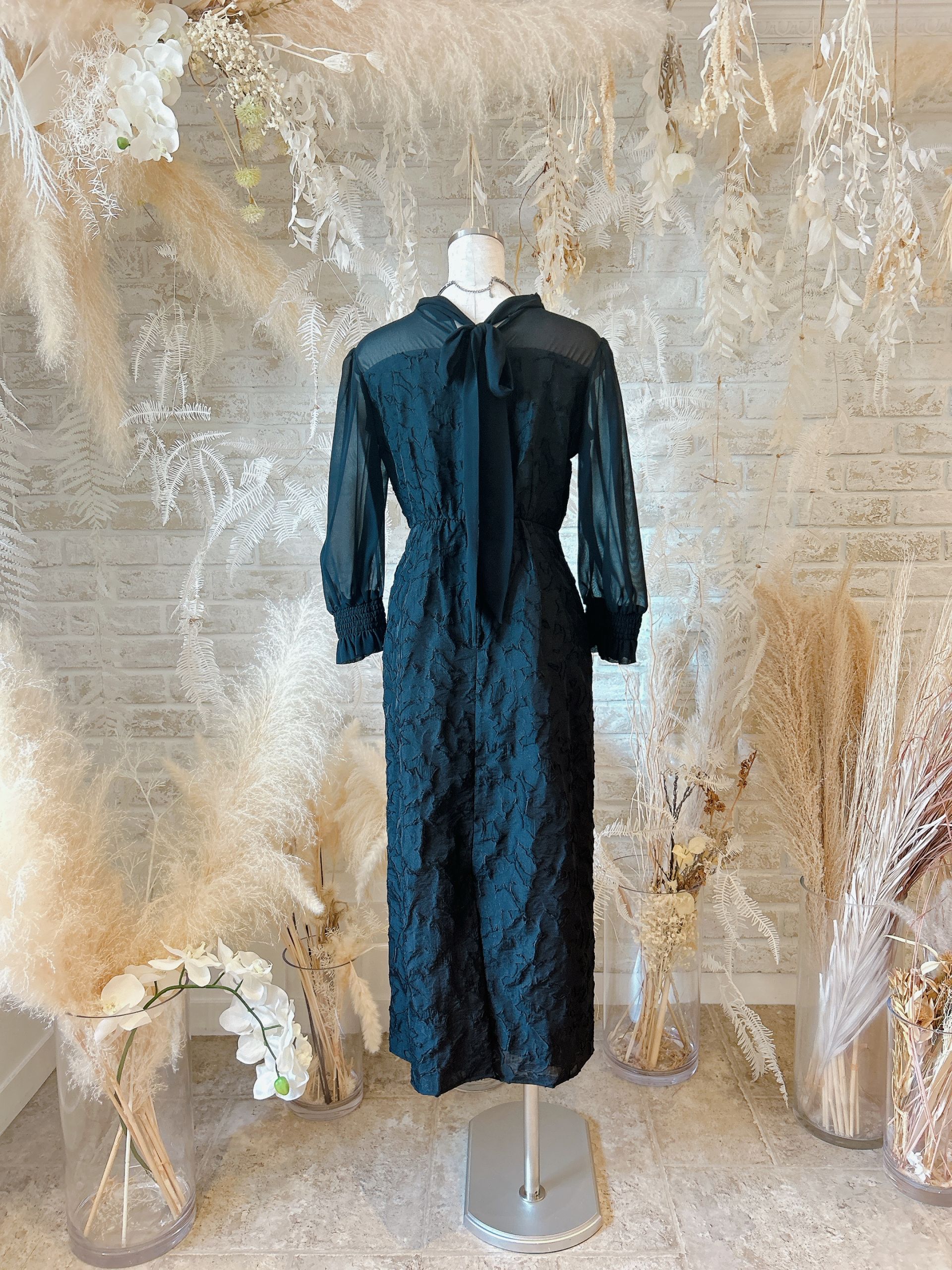 Black/ネックリボンIラインドレス【M】