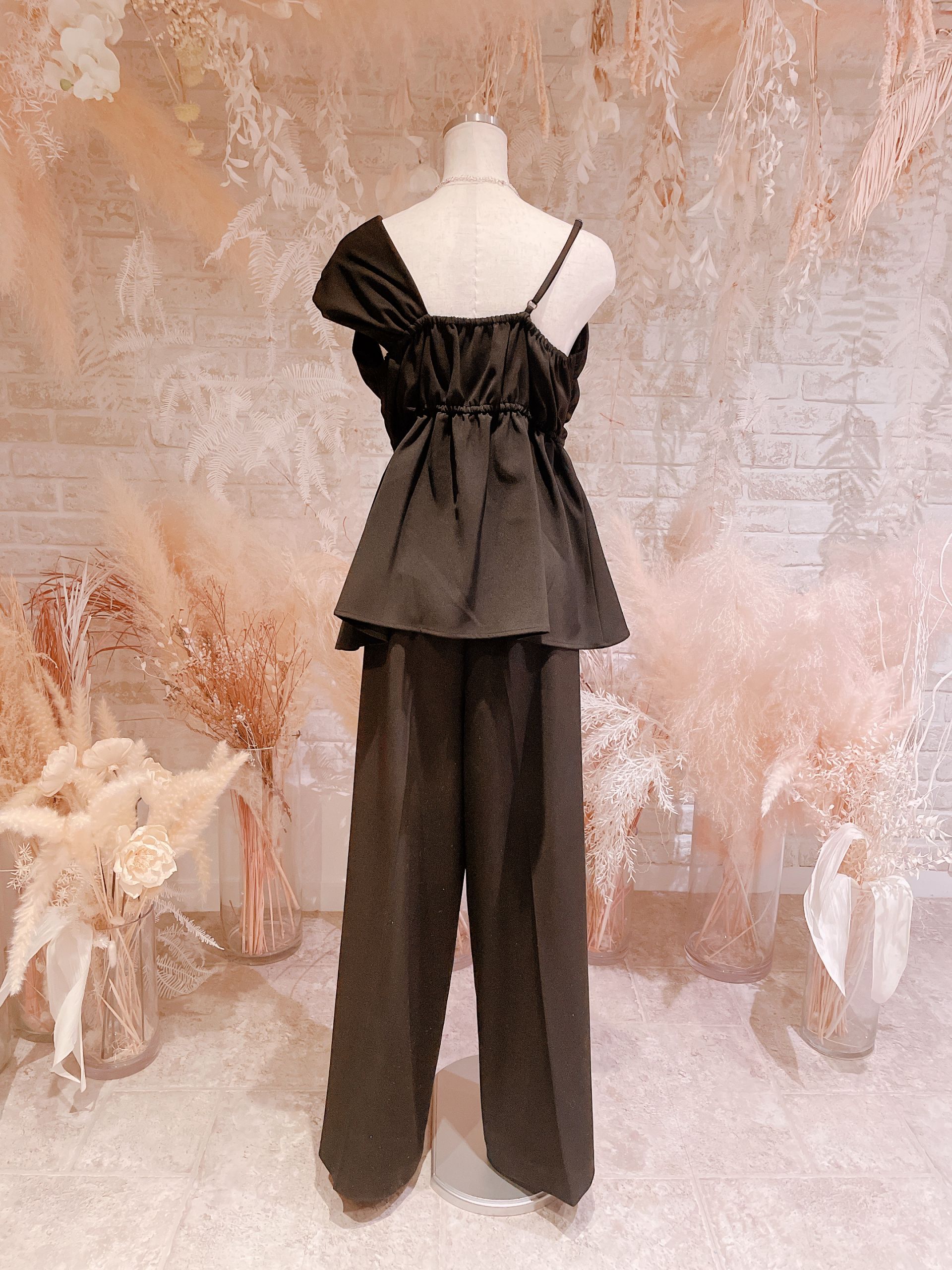 Black/アシンメトリービスチェ×ワイドパンツ【L】