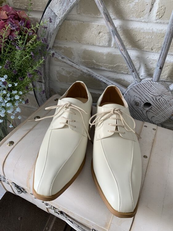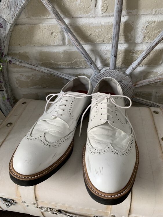 コムサメン 白レザー ウイングチップ レースアップ