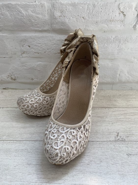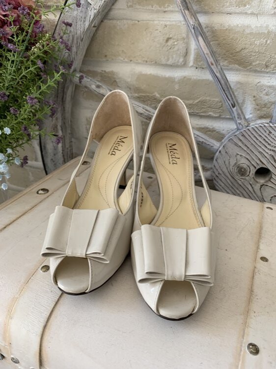 Meda リボン付きエナメルヒールサンダル ホワ...