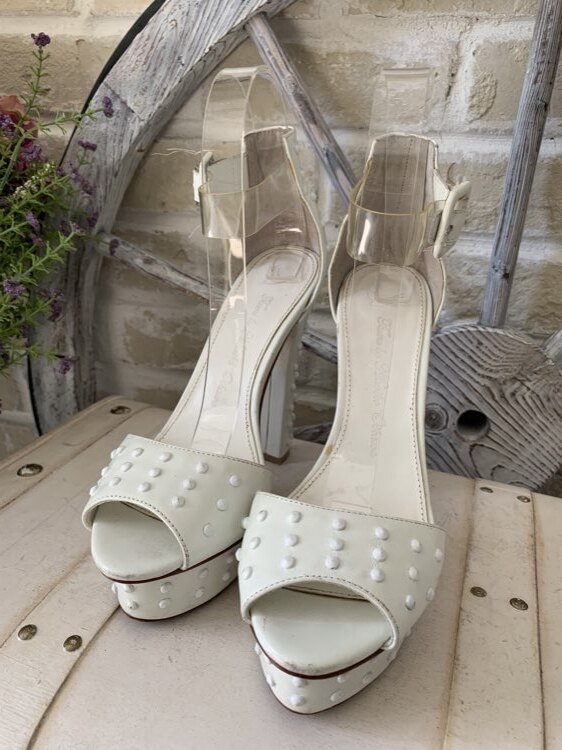 Tsuru クリアベルト付きホワイトスタッズサンダル