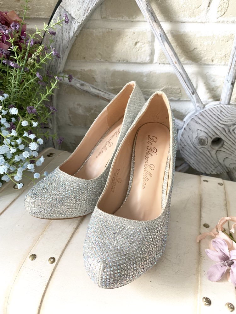 De Blossom Collection 大粒ビジュー付きシルバーパンプス