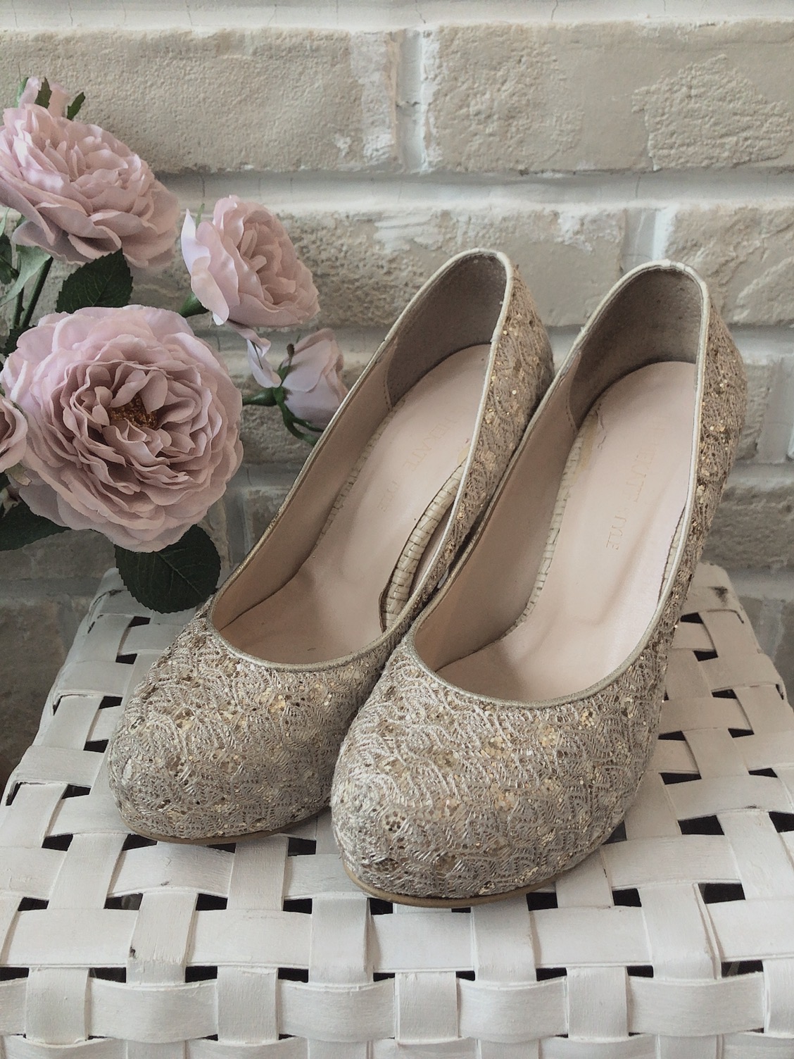ゴールドラメレース×網ヒールパンプス 24.5cm