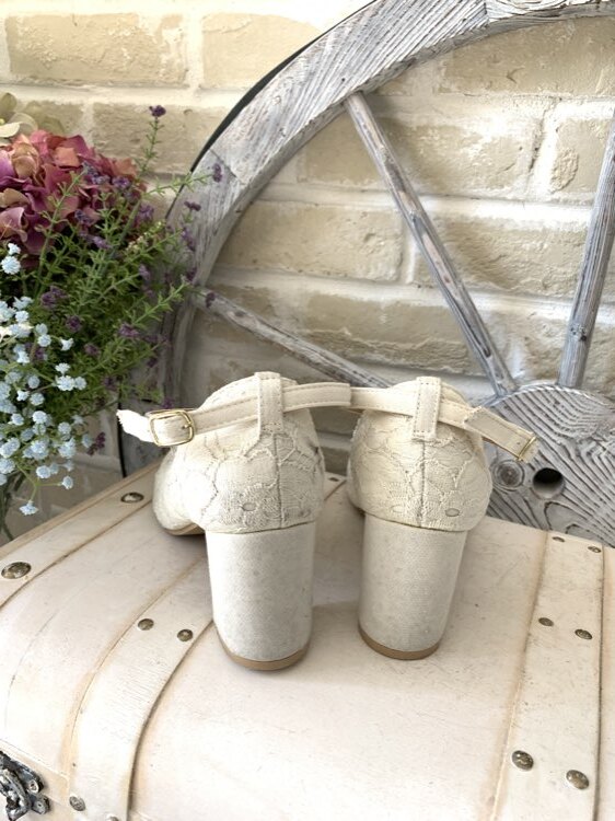CLOSSHI ホワイト総レースチャンキーヒール...