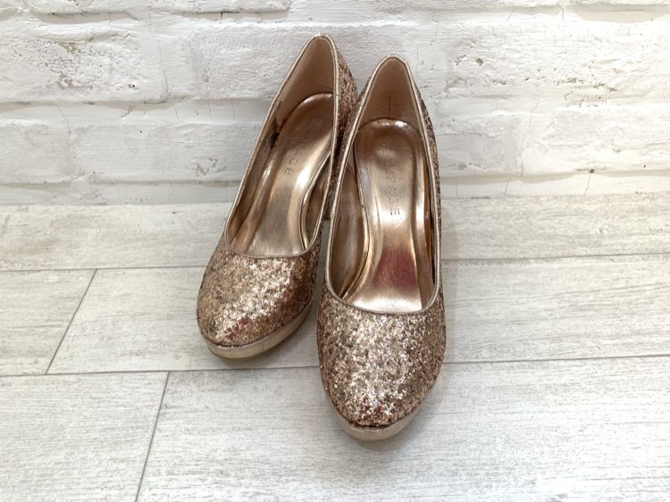 ALDOゴールドラメハイヒールパンプス38