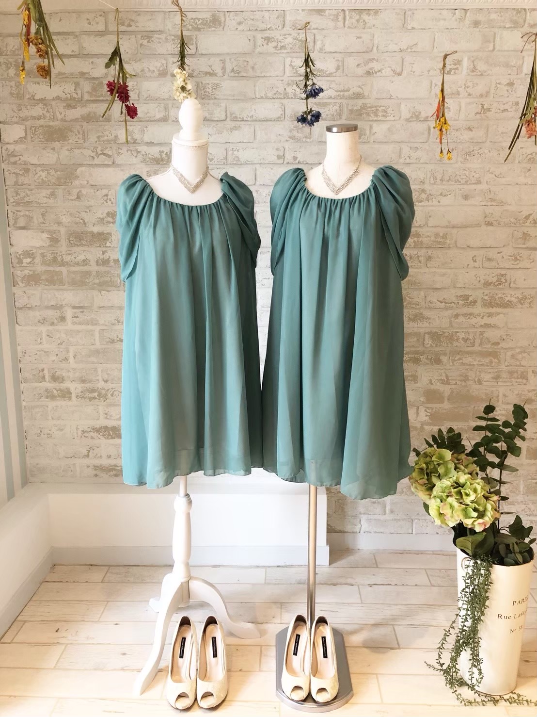 アースグリーンお花刺繍ティアードフリルドレス12...