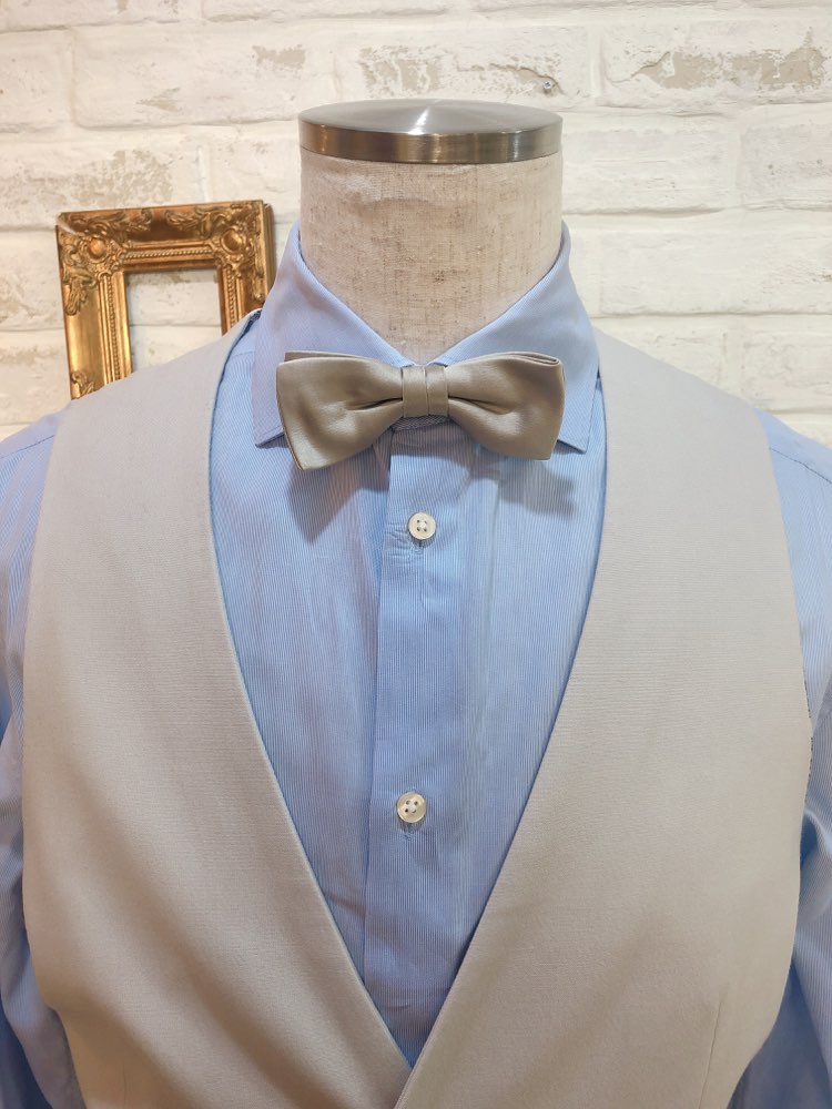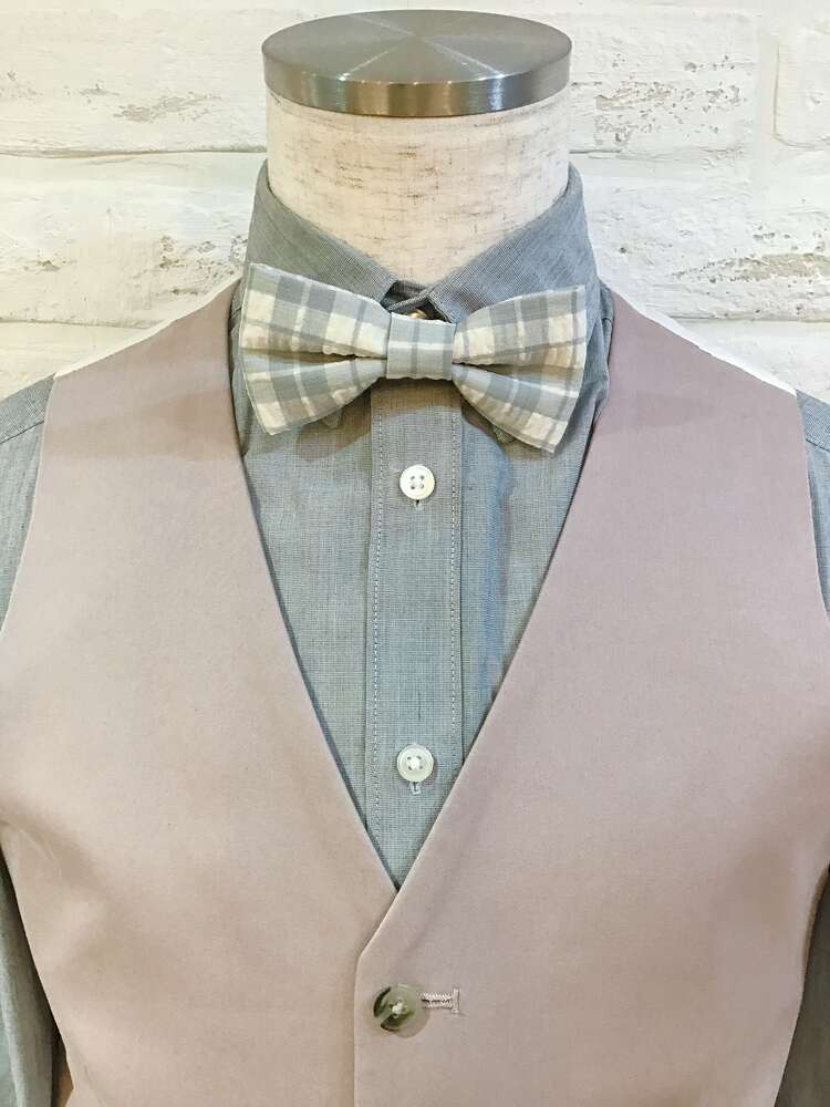 ホワイト×グレーチェック シワ加工蝶ネクタイ