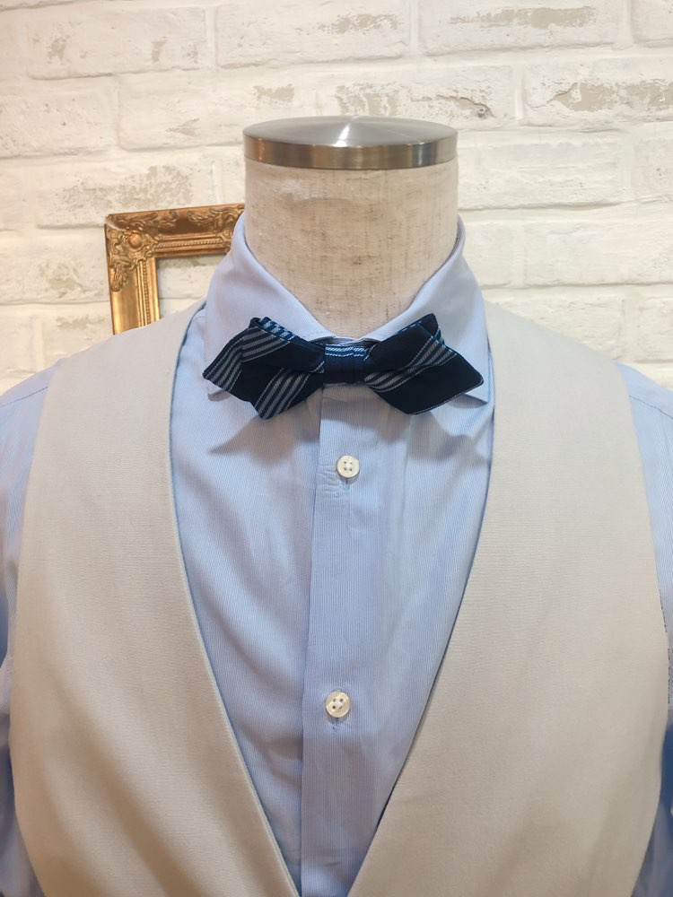 ネイビー×ライトブルーストライプ蝶ネクタイ