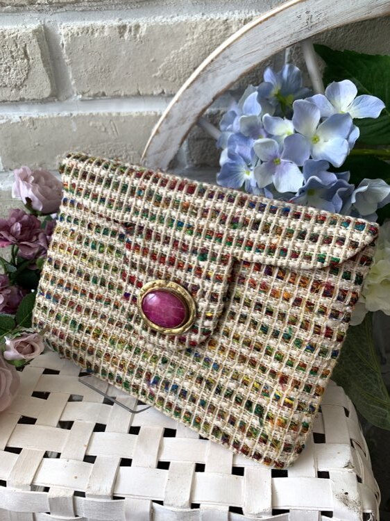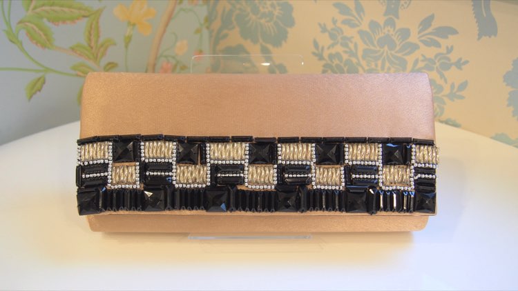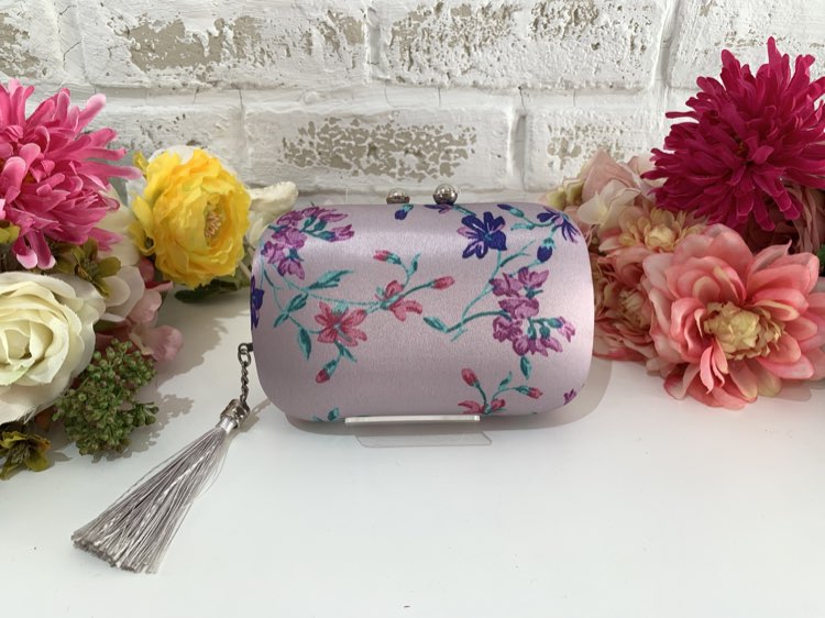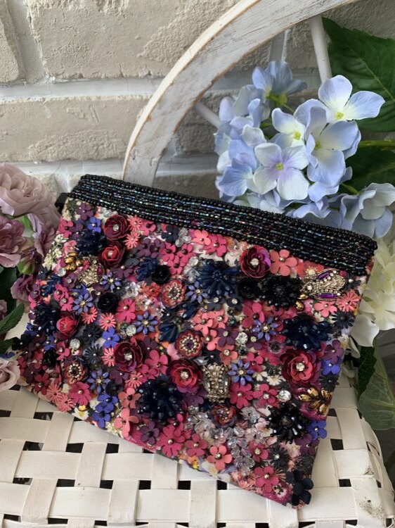 ピンク×ネイビーお花ビジュー×ビーズクラッチ