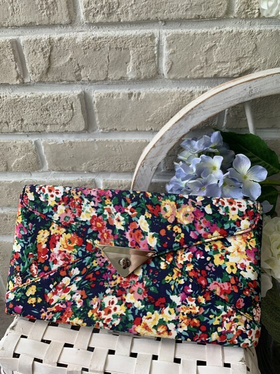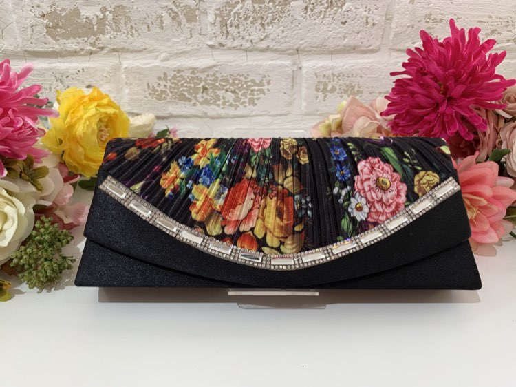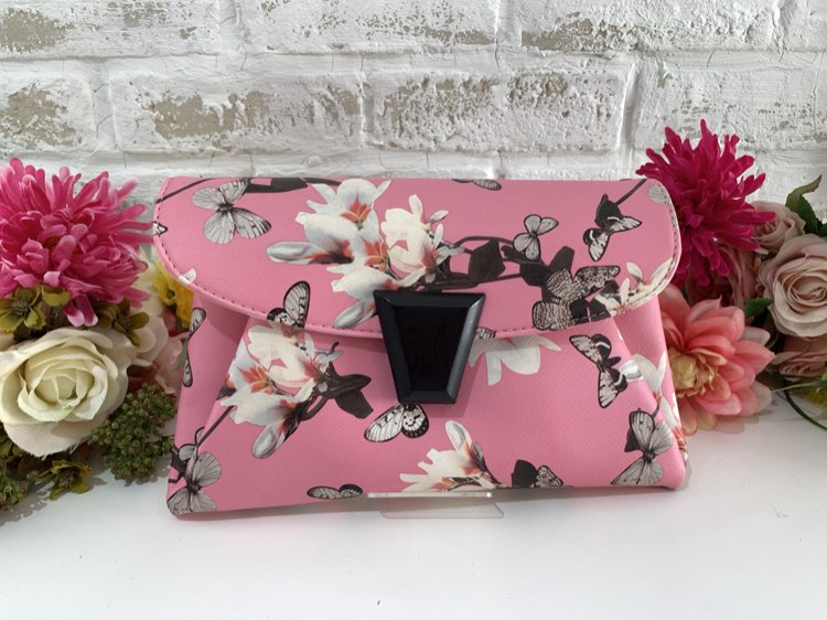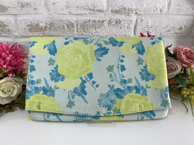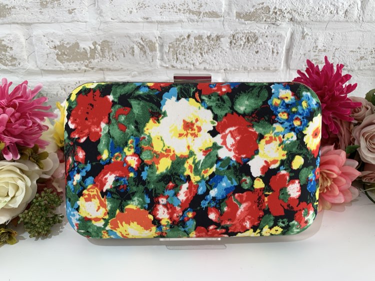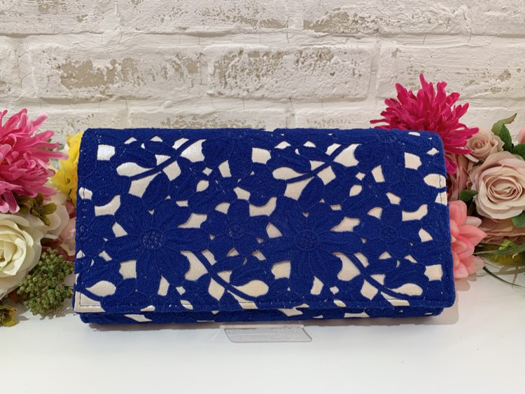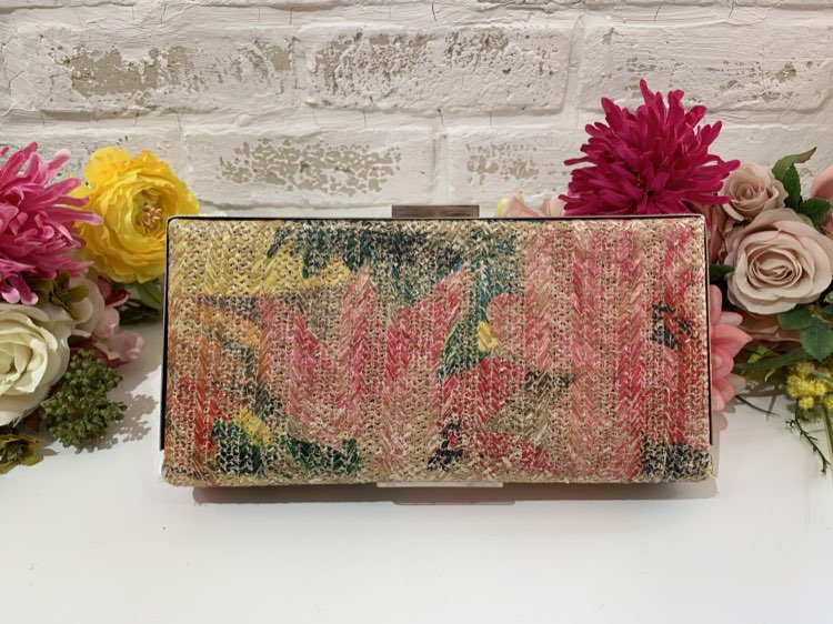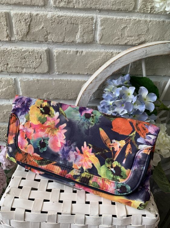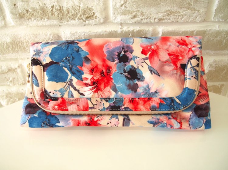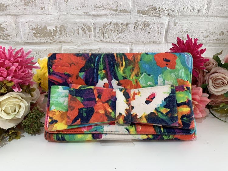 ピンク×ブルーフラワーフェイクスエードワイドクラッチ