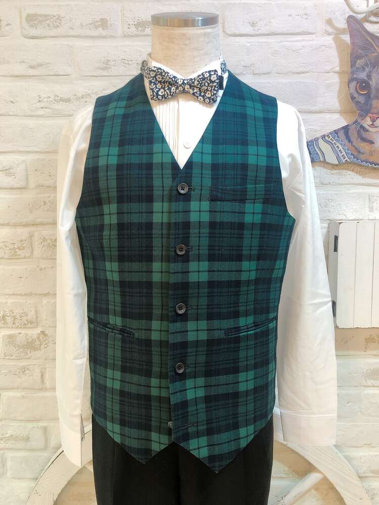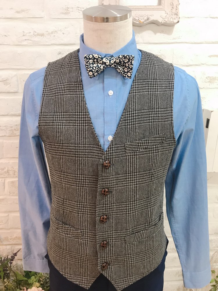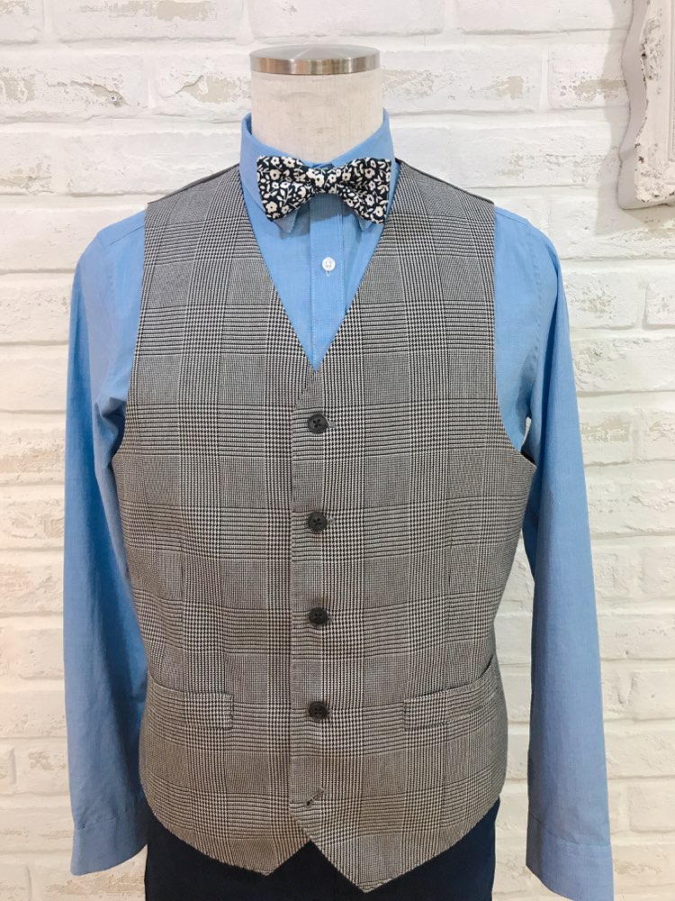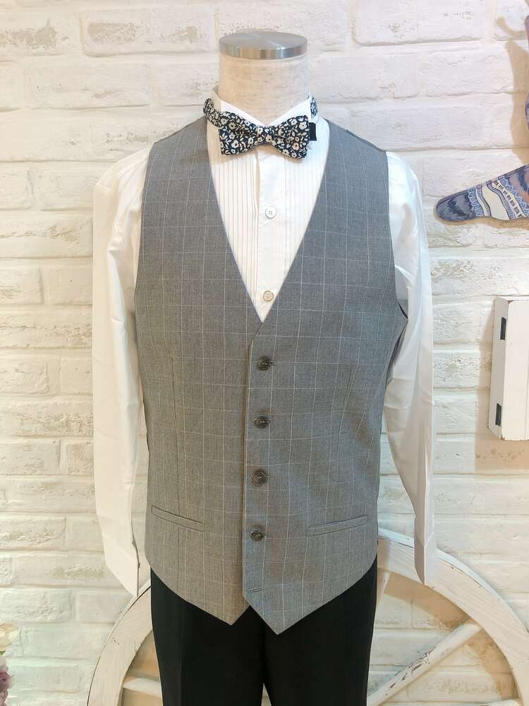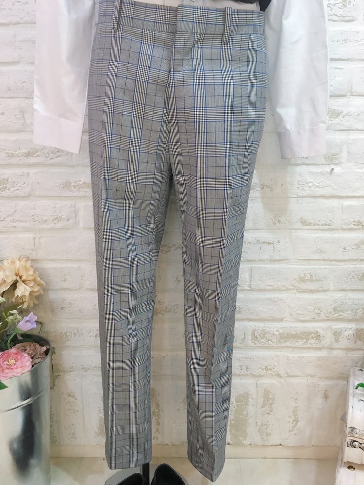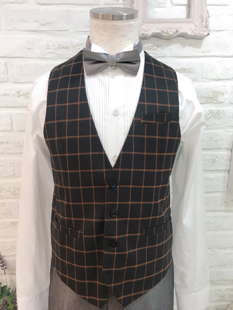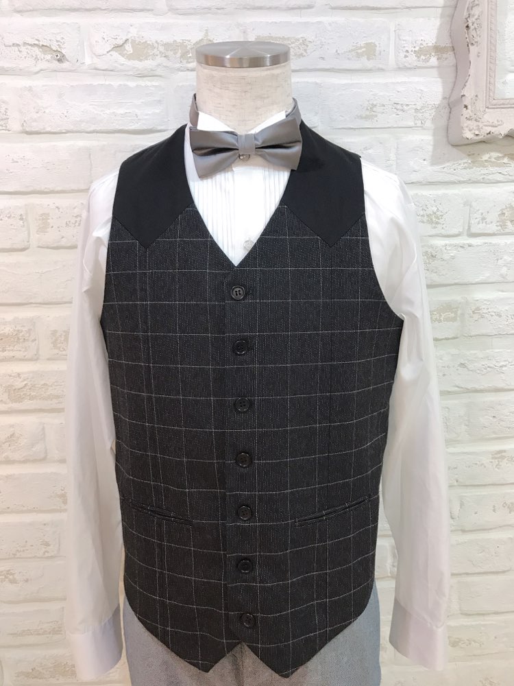 グレーチェック×黒ショールカラージャケットセットパンツM