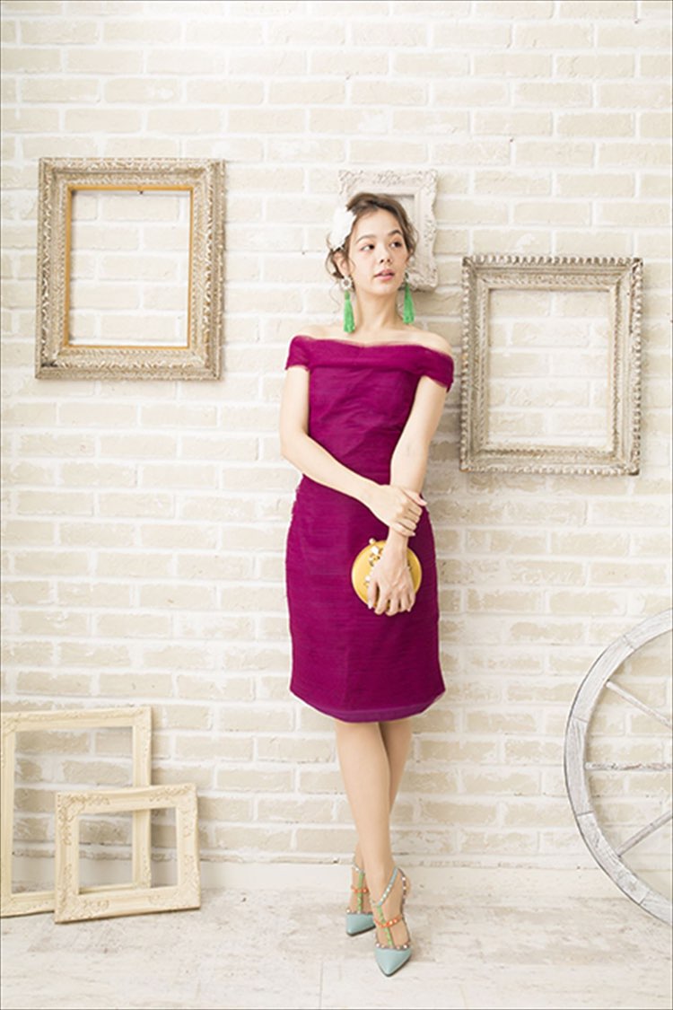 花嫁二次会、1,5次会、ダークパープル胸下切り替...