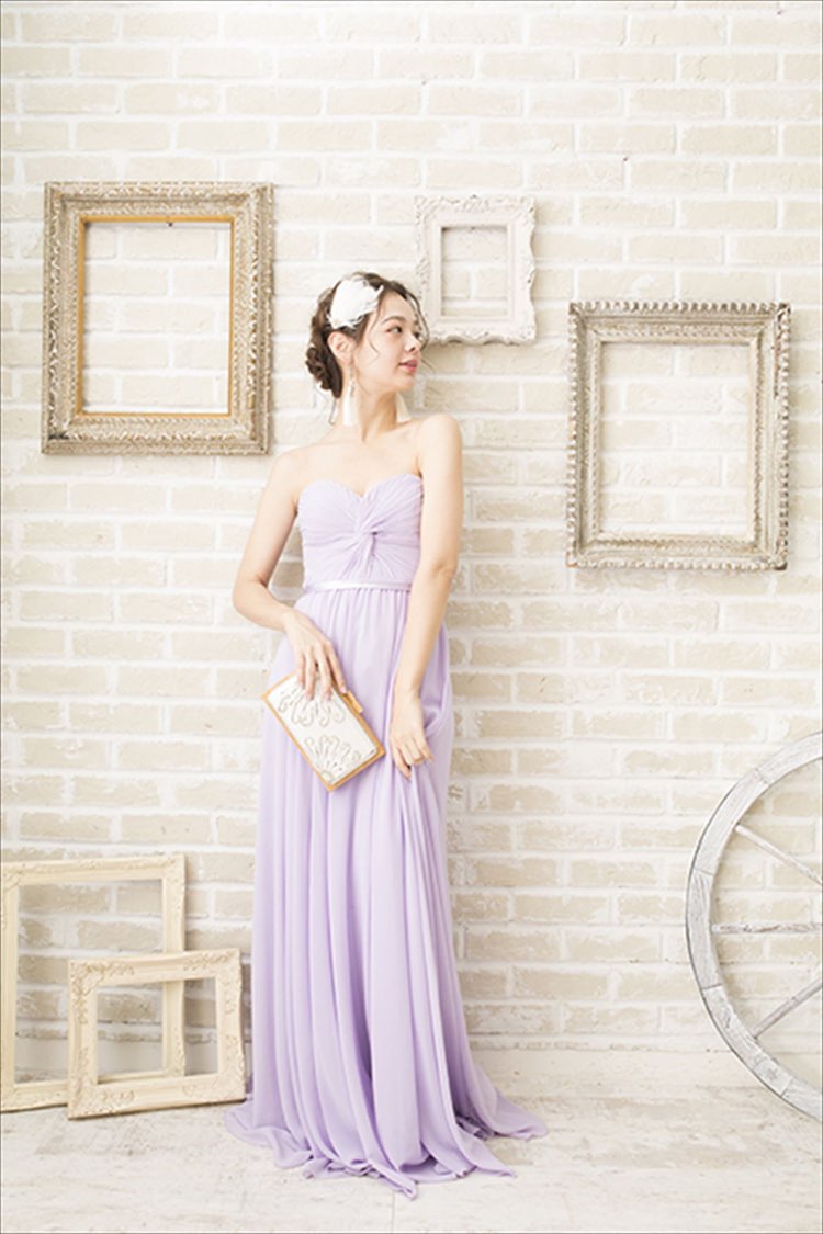 ラベンダーうしろ編み上げブライズメイド対応ロングベアドレス