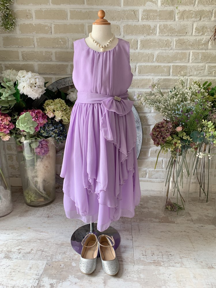 ラベンダーうしろ編み上げブライズメイド対応ロング...