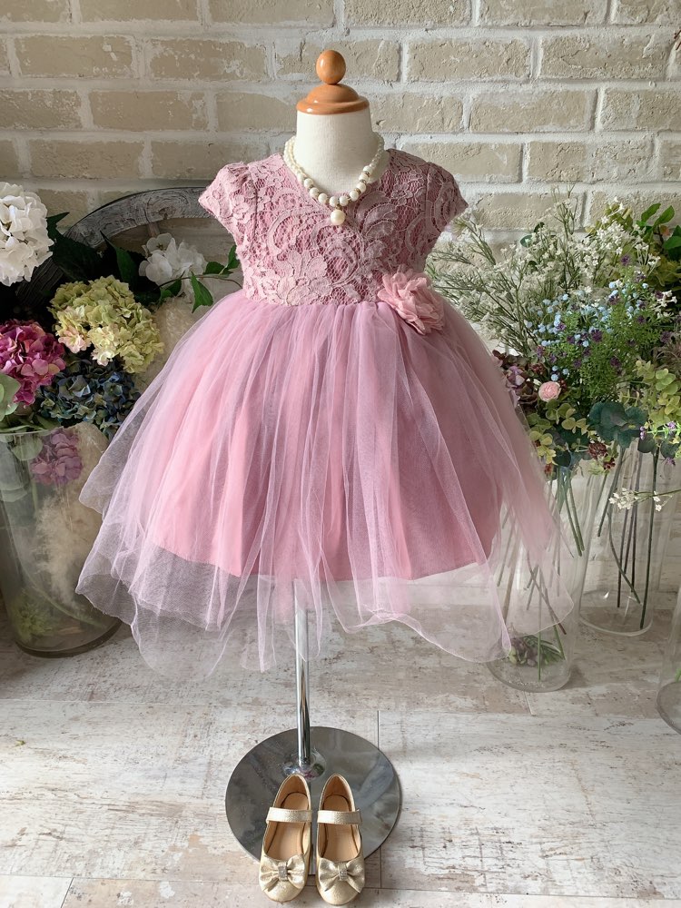 ラベンダー胸元レース柄スカートチュール切り替えミ...