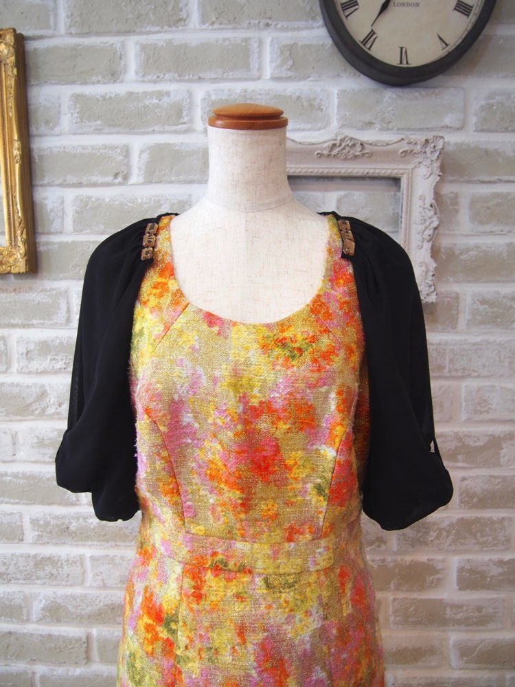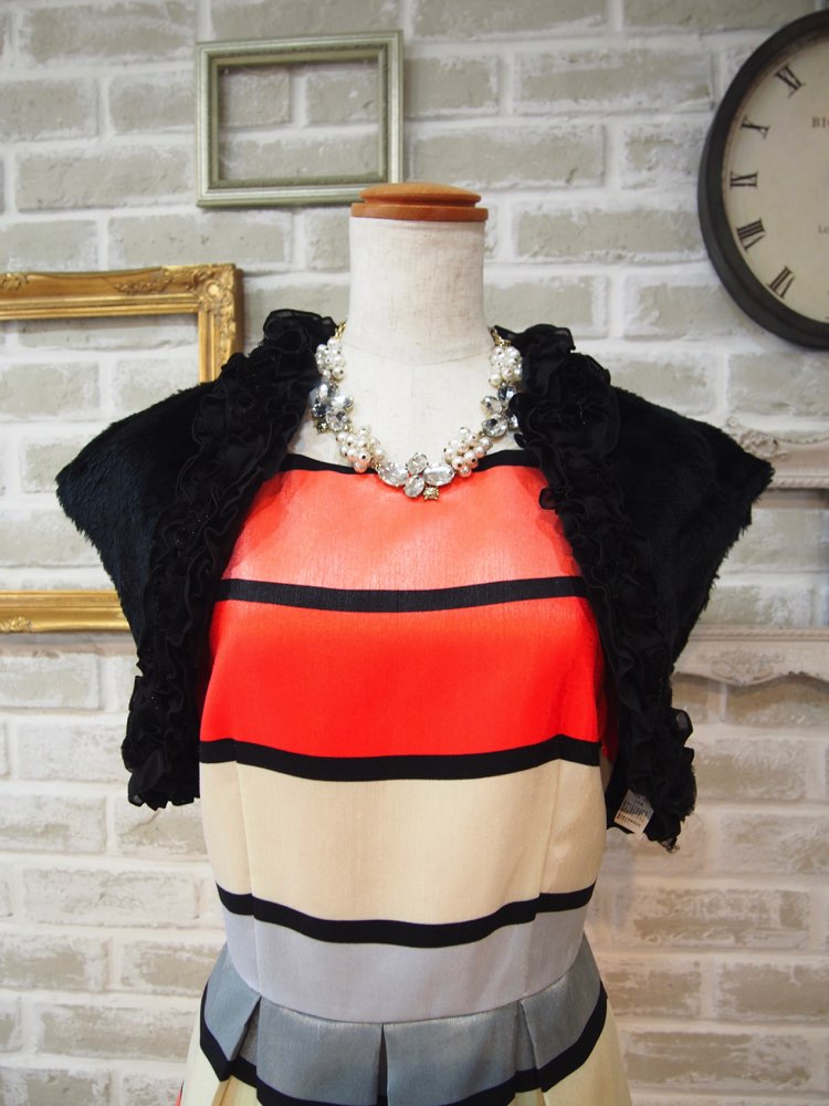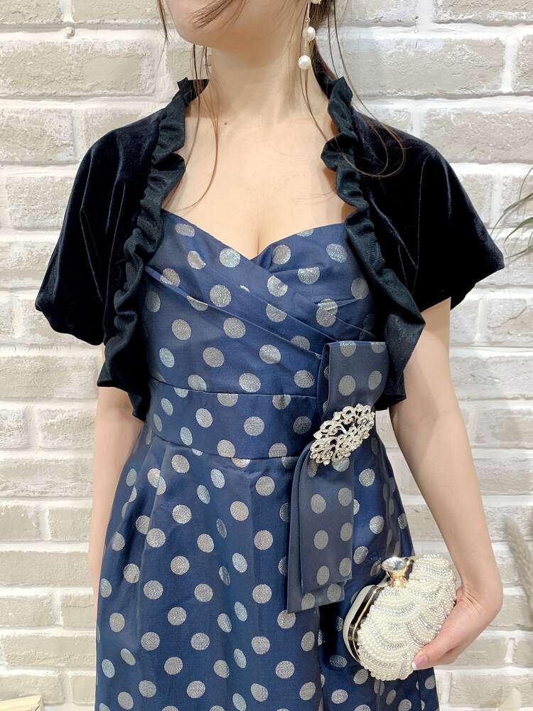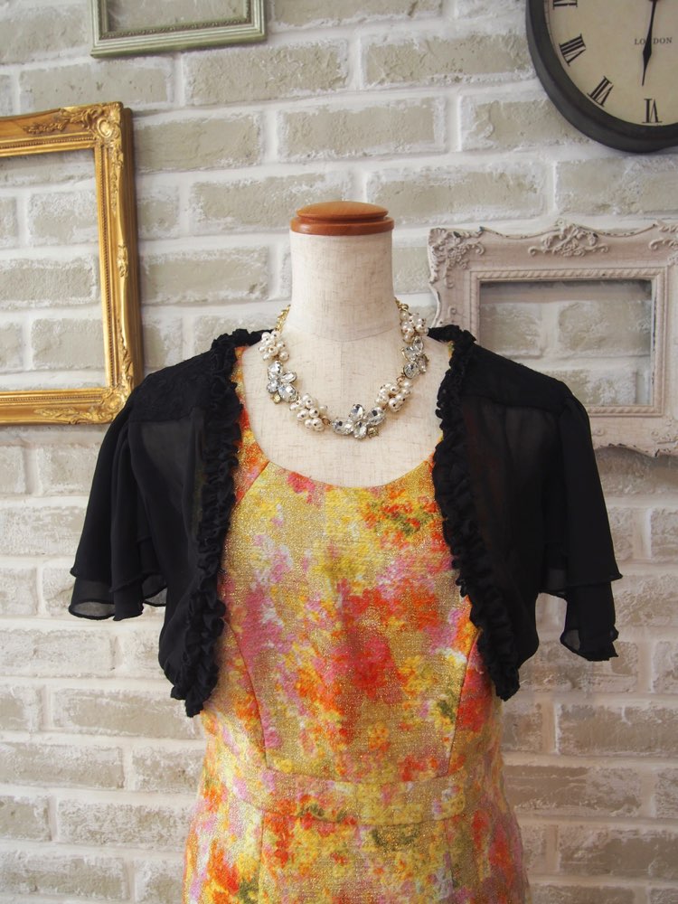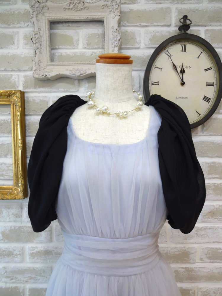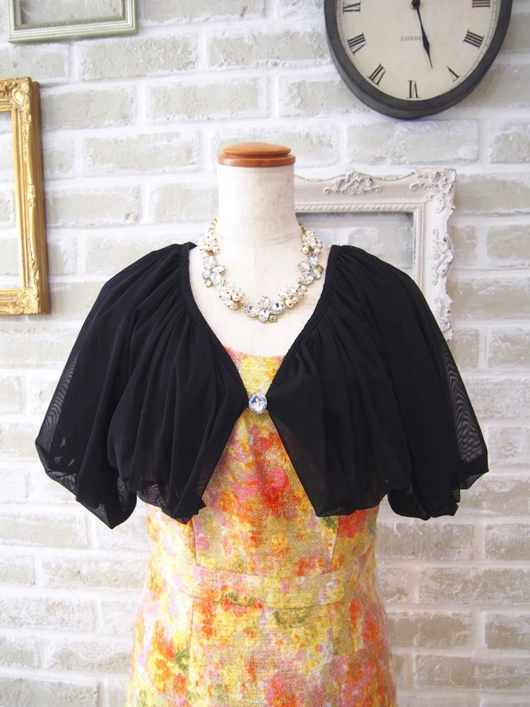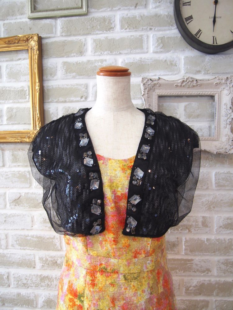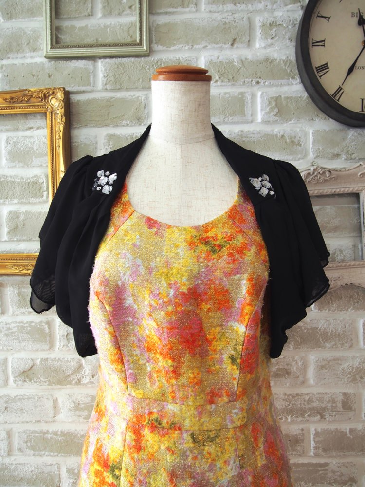 ブラックリボンバルーン袖ビジュー付五分袖ボレロ