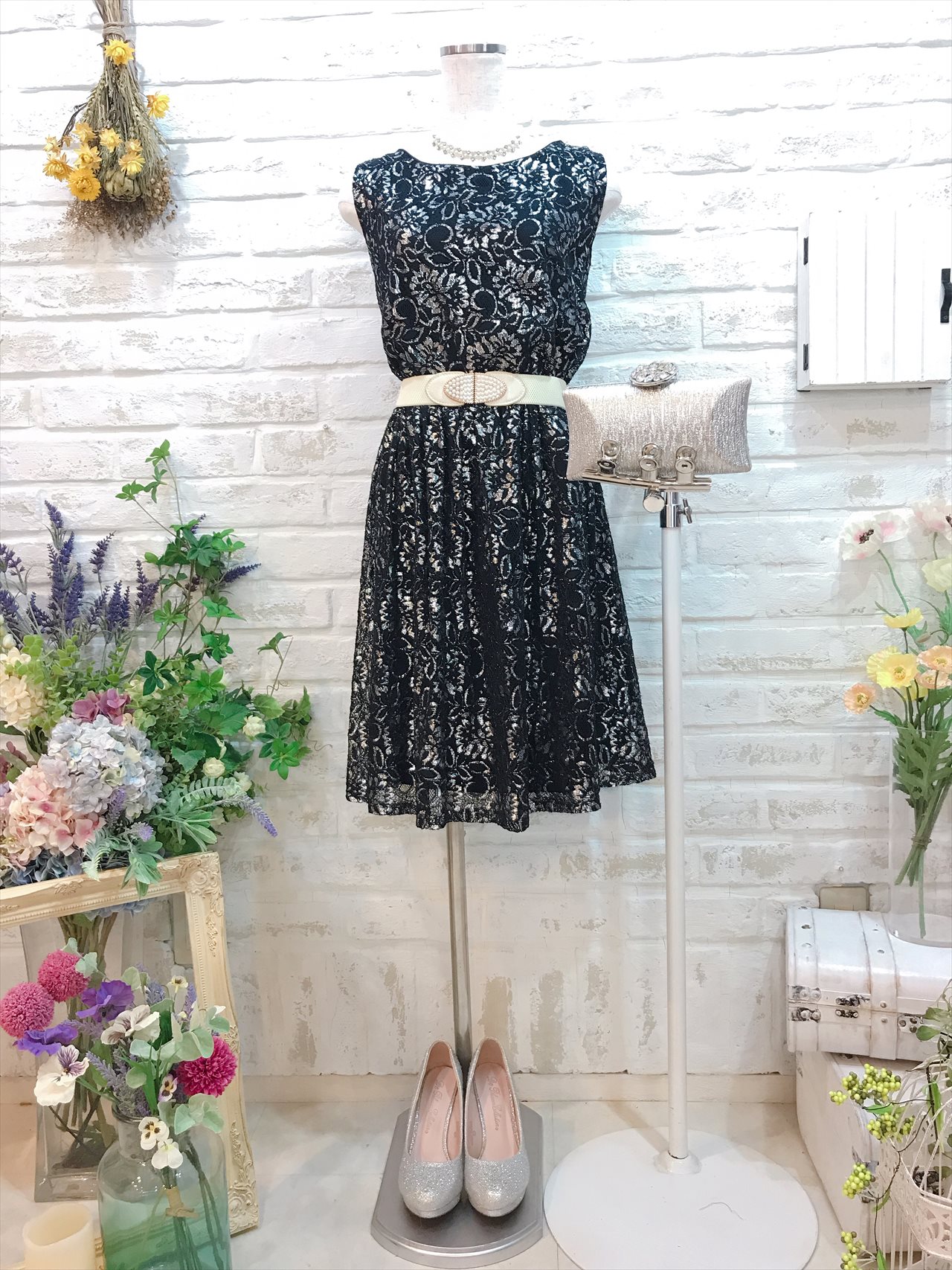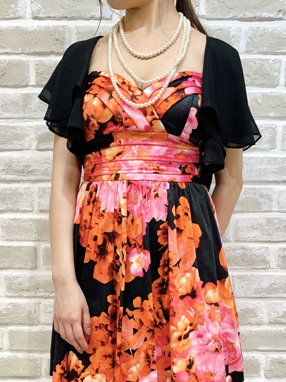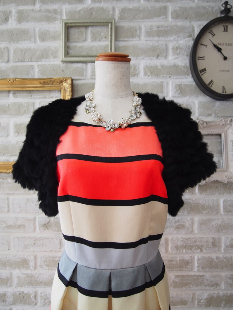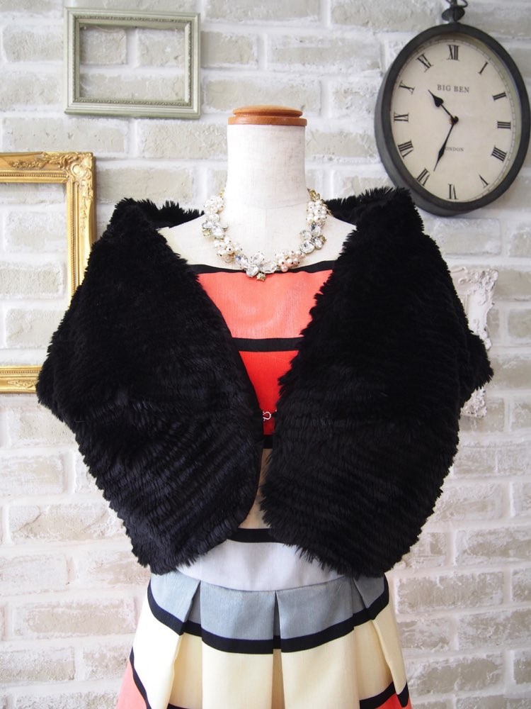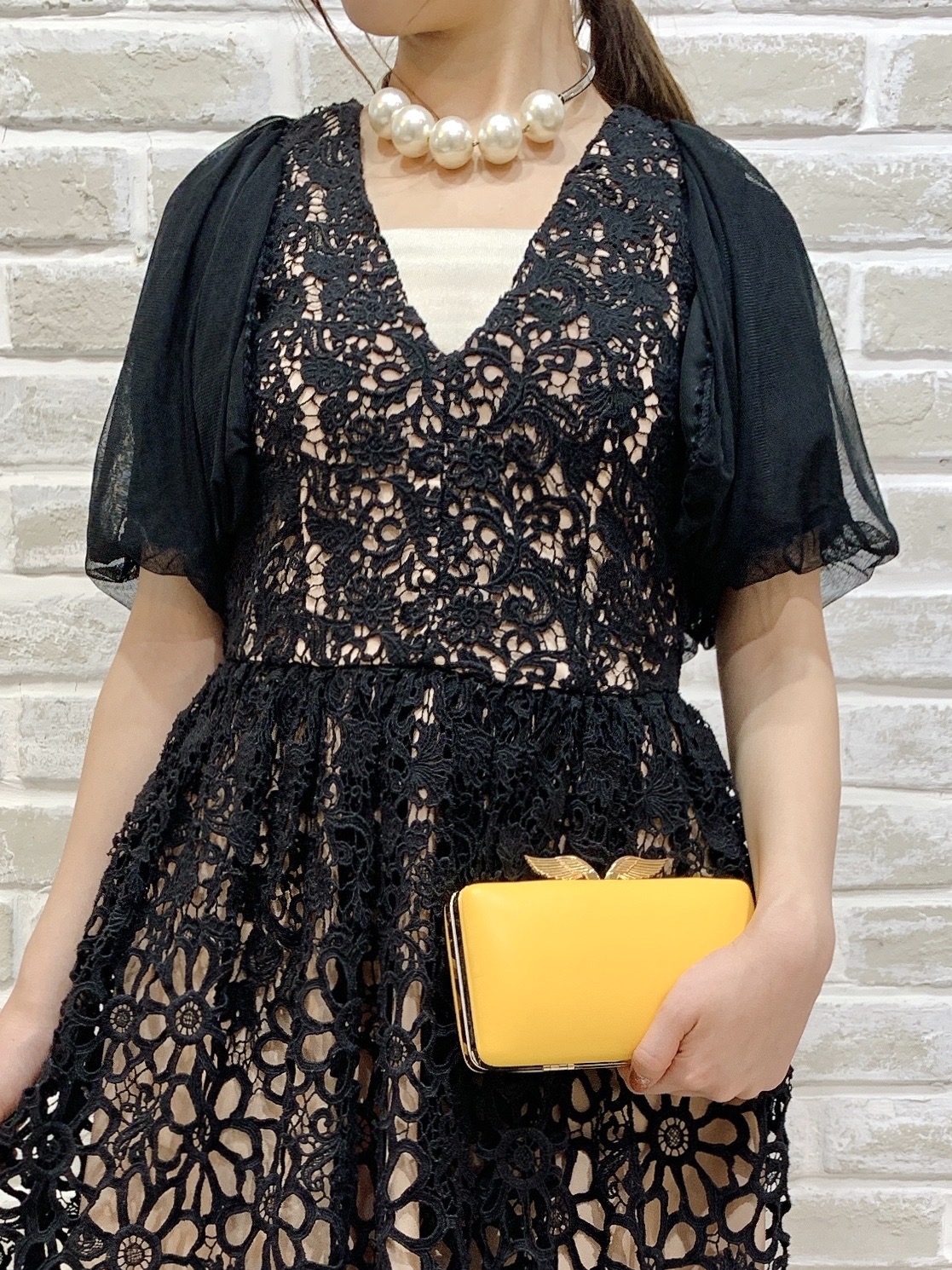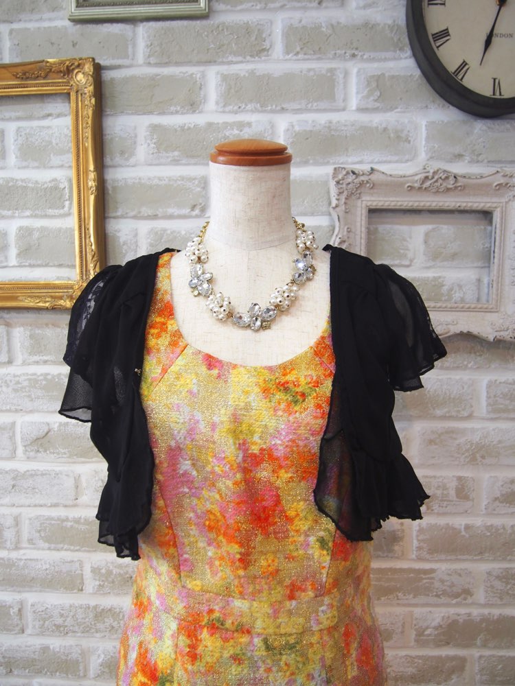 ブラックリボンバルーン袖ビジュー付五分袖ボレロ