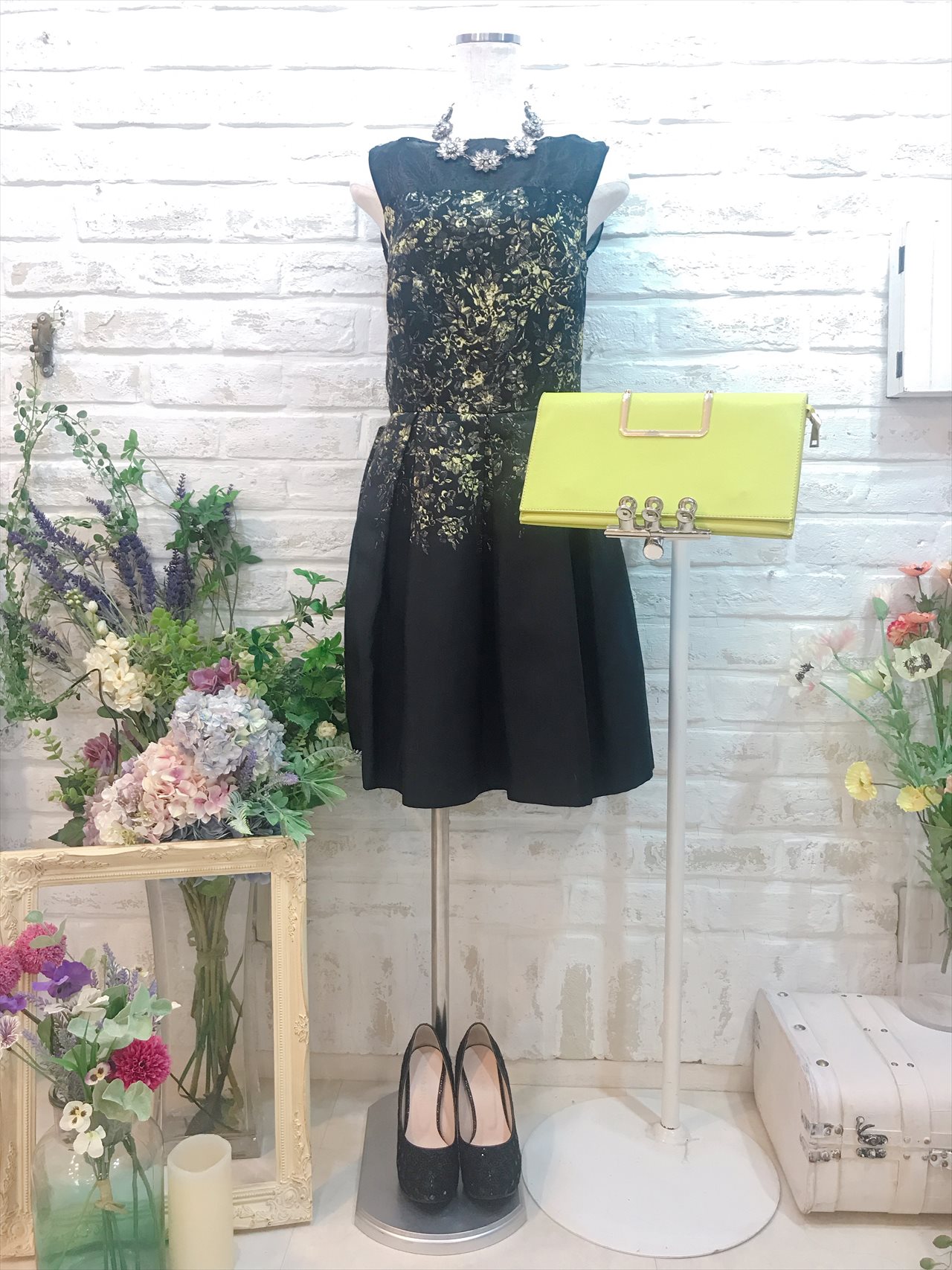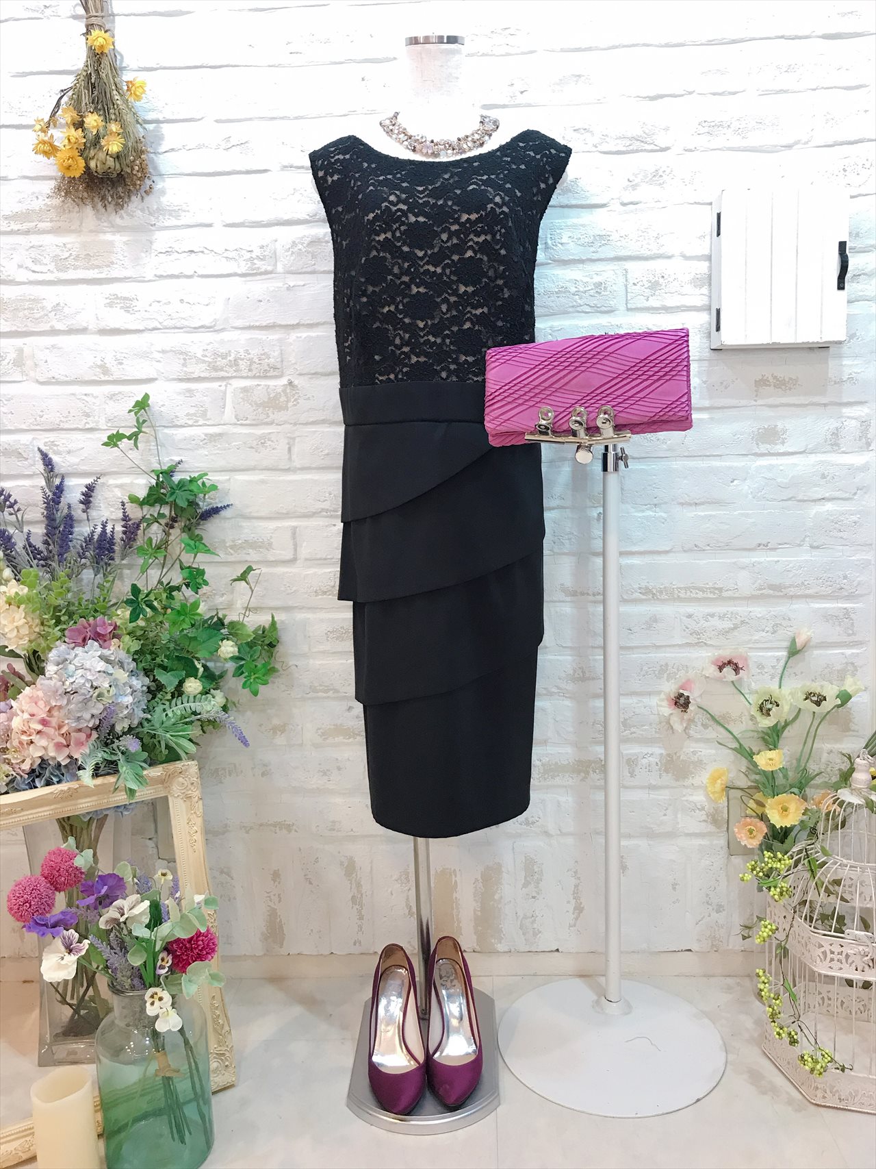 ブラックレース×ピンクベージュチュール重ねショートベアドレス