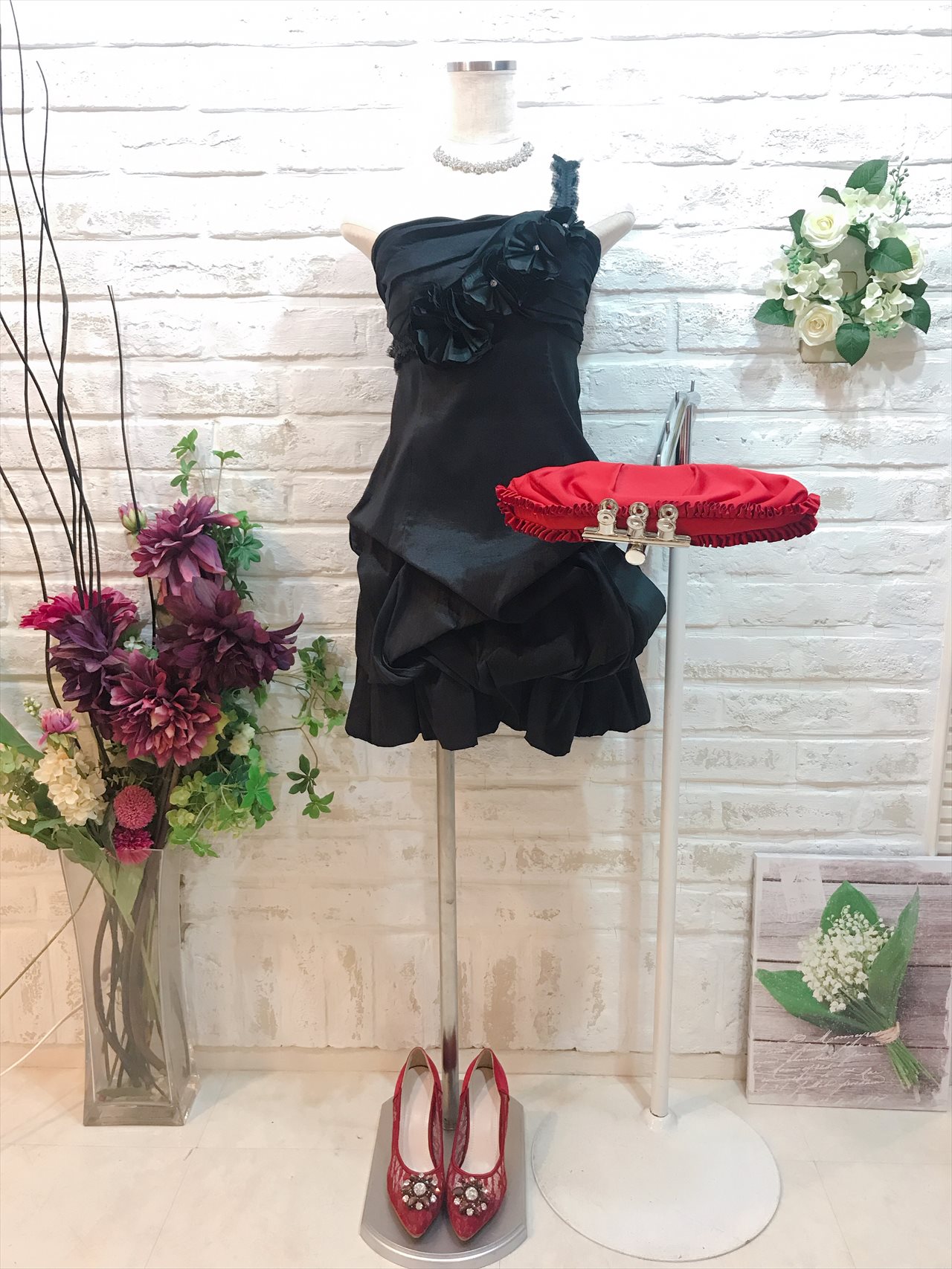 ネイビーバルーンオーガンジースカートミニ丈ベアドレス